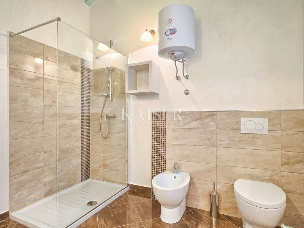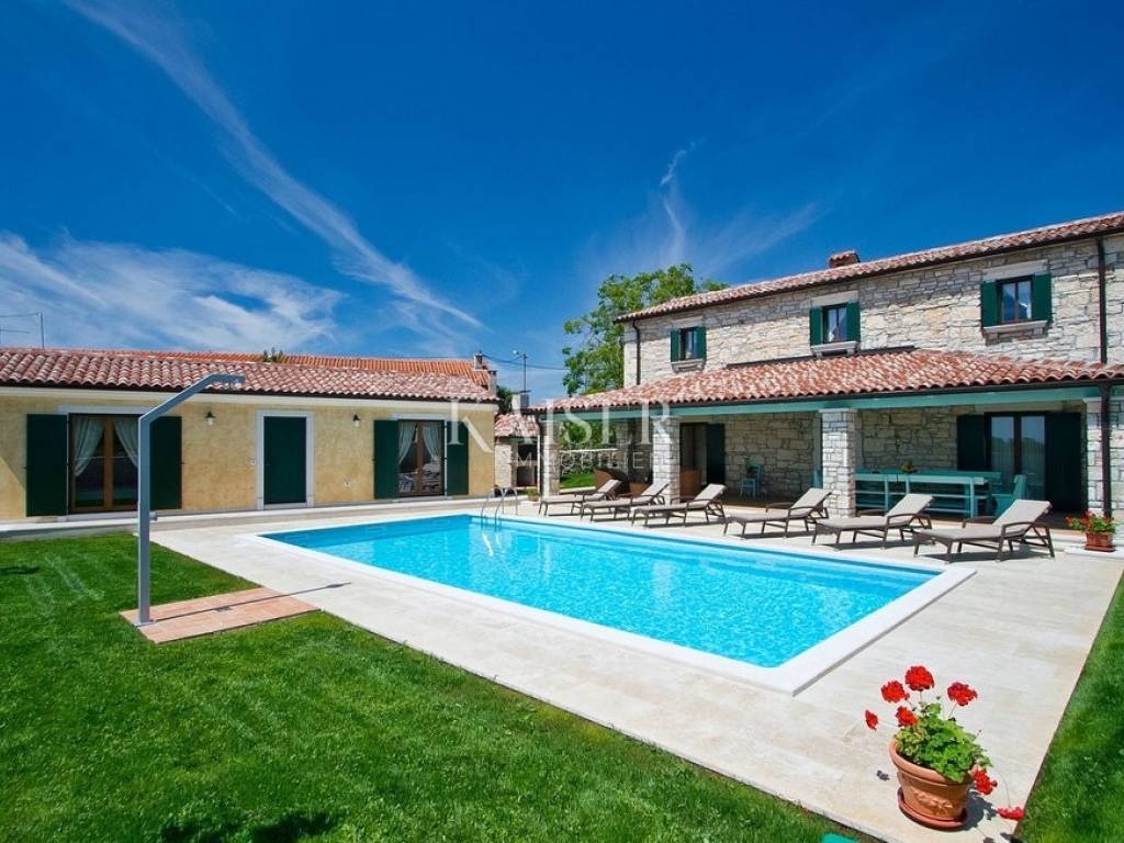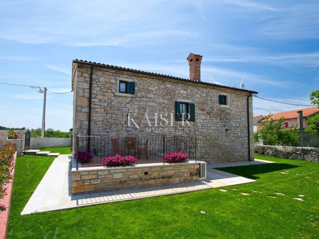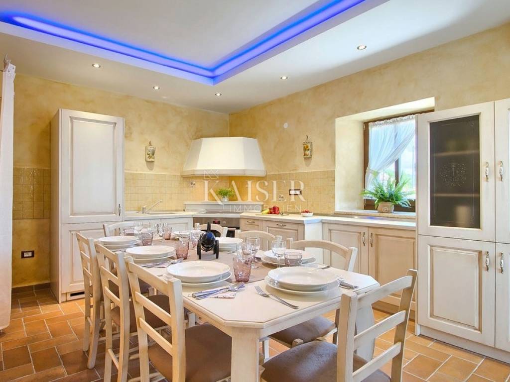 Die Agentur Kaiser Immobilien bietet eine istrische Steinvilla mit Swimmingpool im kleinen und ruhigen Dorf Radetići in der Nähe von Tinjan an. Diese Villa wurde im Jahr 2016 komplett renoviert. Bei der Renovierung wurden hochwertige Materialien verwendet und besonderes Augenmerk auf die einheimischen Stein- und Holzdetails gelegt, die in ihrer ursprünglichen Pracht wiederhergestellt wurden. Die Villa hat eine Fläche von 230 m2 und befindet sich auf einem Grundstück von 847 m2. Das Anwesen besteht aus dem Hauptgebäude und zwei kleineren Häusern sowie zwei Wohnungen. Das Hauptgebäude erstreckt sich über zwei Etagen. Im Erdgeschoss befinden sich ein geräumiges Wohnzimmer mit Holzkamin, eine Küche, ein Esszimmer, ein Badezimmer und eine überdachte Terrasse, die ideal zum Genießen und für gesellige Stunden im Freien ist. Eine Innentreppe führt in die obere Etage, wo sich zwei Schlafzimmer mit eigenen Badezimmern befinden. Von der Villa aus hat man einen wunderbaren, offenen Blick in die Natur. Ein Cottage befindet sich am Pool, während sich das andere hinter der Hauptvilla befindet. Das größere Haus, das am Pool liegt, verfügt über zwei Schlafzimmer und Badezimmer, während das kleinere Haus über ein Schlafzimmer, ein Badezimmer und einen Raum verfügt, der für gesellige Stunden genutzt werden kann. Beide Cottages sind, wie das Hauptgebäude, klimatisiert, geräumig und komfortabel. Der gesamte Garten der Villa ist eingezäunt und das schöne Eingangstor ist ein besonderer Blickfang. Eine besondere Note verleiht dem gesamten Garten ein 50 m² großer Swimmingpool mit Sonnenbereich, Außendusche und Steingrill. Diese wunderschöne Terrasse bietet einen hervorragenden Rahmen zum Entspannen und für gesellige Stunden und ist von einer Rasenfläche mit Bewässerungssystem umgeben. Neben der Villa gibt es einen Parkplatz für mehrere Autos und die Villa verfügt außerdem über eine Alarmanlage zur Überwachung. Tinjan: 8 km Poreč: 21 km Rovinj: 28 km Flughafen Pula: 48 km Flughafen Zagreb: 245 km München, Wien: 570 km Ljubljana: 170 km Die Maklerprovision für den Käufer beträgt 3 % + MwSt. und wird erst beim Verkauf der Immobilie und bei Unterzeichnung der ersten rechtsgültigen Urkunde gezahlt. Für weitere Informationen wenden Sie sich bitte an: Marijana Cuculić Telefon: + 385 98 186 9950 E-Mail: marijana.cuculic@kaiser-immobilien.hr