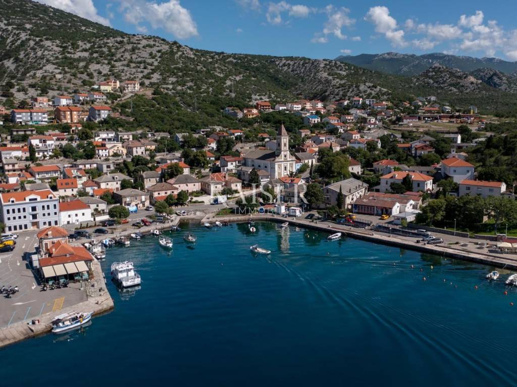 Kaiser Immobilien vermittelt den Verkauf einer Immobilie mit Potenzial in hervorragender Lage, nur 30m vom Meer entfernt in Sv. Juraj in der Nähe von Senj. Es handelt sich eigentlich um zwei Gebäude, das größere hat eine Wohnfläche von 420 m2 und besteht aus Keller, Erdgeschoss und erstem Stock, und ein kleineres Gebäude besteht aus einer Garage im Erdgeschoss und einem ersten Stock – einer Wohnung von 57 m2. Im Hauptgebäude wurde im Untergeschoss mit der Sanierung der für vier Wohnungen mit einem Hauswirtschaftsraum vorgesehenen Räumlichkeiten begonnen. Außerdem gibt es eine geräumige Terrasse, die sich über die gesamte Länge des Hauses erstreckt, mit einem Garten und einer wunderschönen Aussicht auf das Meer und die Inseln. Das Erdgeschoss ist als Wohnung mit zwei Schlafzimmern, zwei Bädern, einem Abstellraum, einer Küche, einem Esszimmer und einem Wohnzimmer eingerichtet. Im ersten Stock befindet sich eine geräumige Wohnung mit vier Schlafzimmern, vier Bädern, einer Küche, einem Esszimmer und einem Wohnzimmer. Eine ideale Immobilie für alle, die in einem idyllischen und ruhigen Küstenort Tourismus betreiben möchten. Die Maklerprovision für den Käufer beträgt 3% zzgl. MwSt. und wird beim Immobilienkauf mit Abschluss des ersten Rechtsgeschäfts fällig. ID-CODE 105-298