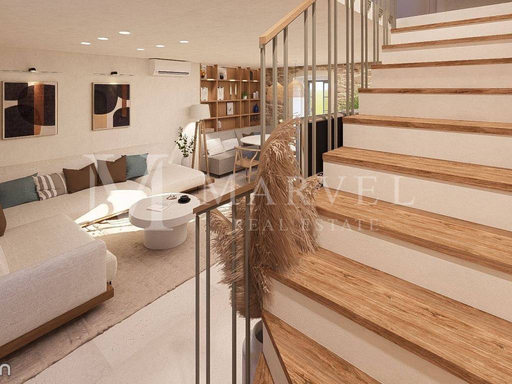 Das Hochparterre ist für eine Küche, Essbereich und Wohnzimmer mit Innentreppe vorgesehenmit Badezimmer und Zugang zur großen Terrasse perfekt zum Entspannen oder Speisen unter freiem Himmel.