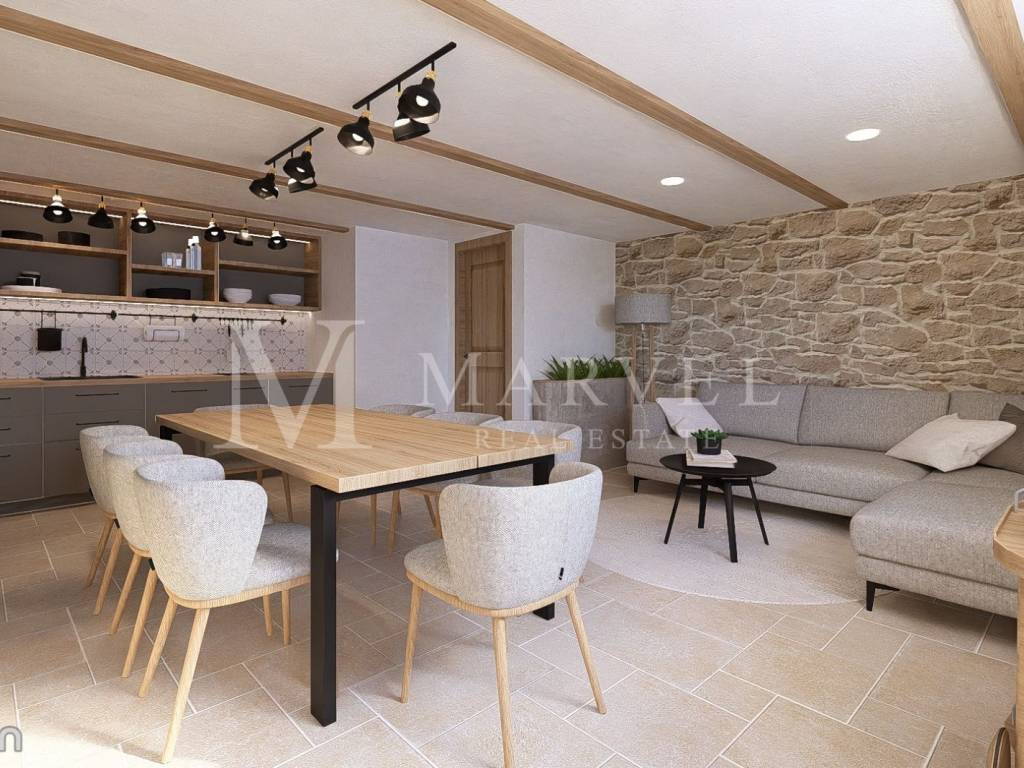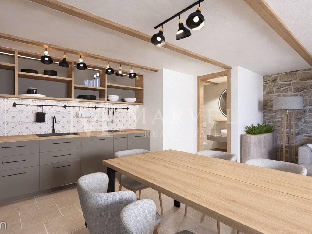 Im Zentrum der malerischen Altstadt von Omišalj auf der Insel Krk befindet sich dieses charmante Steinhaus mit einer Gesamtfläche von 112,50 m und einer großzügigen Terrasse von 33 m. Eingebettet zwischen historischen Steinmauern, bietet diese Immobilie eine seltene Gelegenheit zur Renovierung eines authentischen Küstenhauses mit bereits entwickeltem Gestaltungskonzept und 3D-Visualisierungen, die das volle Potenzial zeigen.
