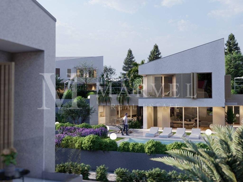 Der Außenbereich umfasst einen 40 m großen Pool, eine überdachte Terrasse und ausreichend Platz für das Leben im Freien. Die Villa bietet Privatsphäre und gleichzeitig Zugang zu Resort-Annehmlichkeiten wie Tennis- und Basketballplatz, Minigolf, Boccia, Spielplatz und Outdoor-Fitnessbereich.