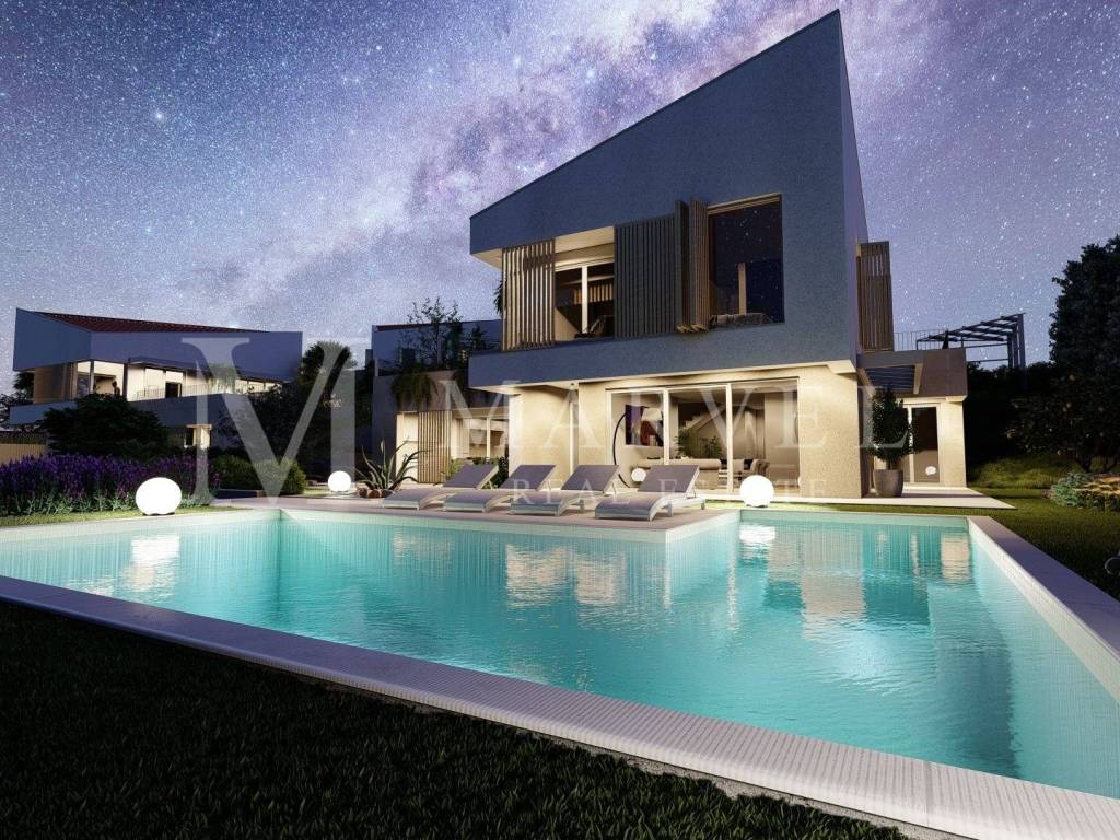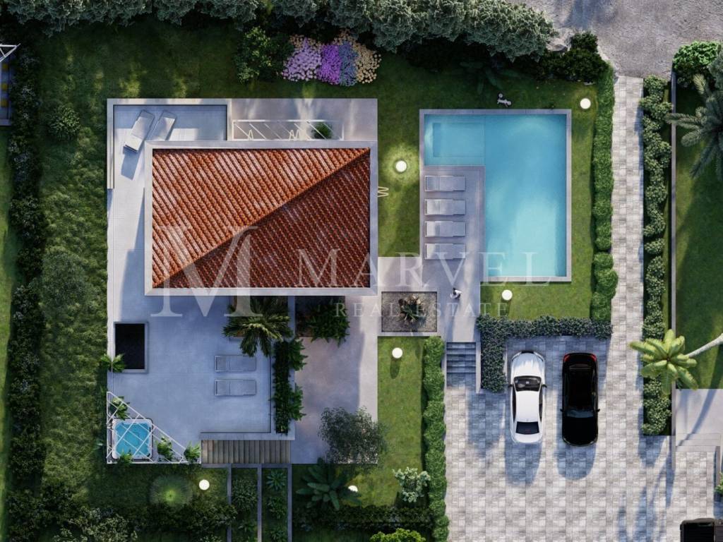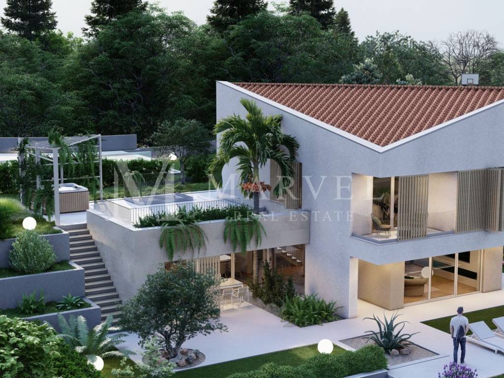 Nur einen Kilometer vom Meer entfernt, in einem ruhigen und gepflegten Teil von Malinska, befindet sich diese modern gestaltete Villa mit einer Bruttofläche von ca. 200 m auf einem Grundstück von 726 m. Sie ist Teil eines exklusiven Komplexes mit insgesamt 5 Luxusimmobilien und gemeinsamen Freizeitangeboten.