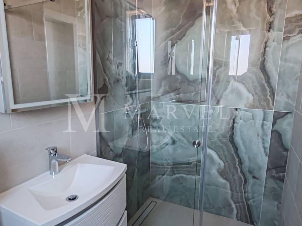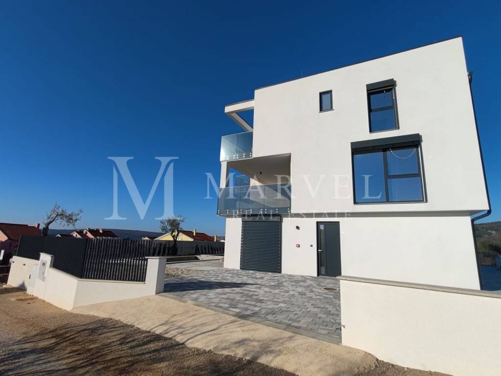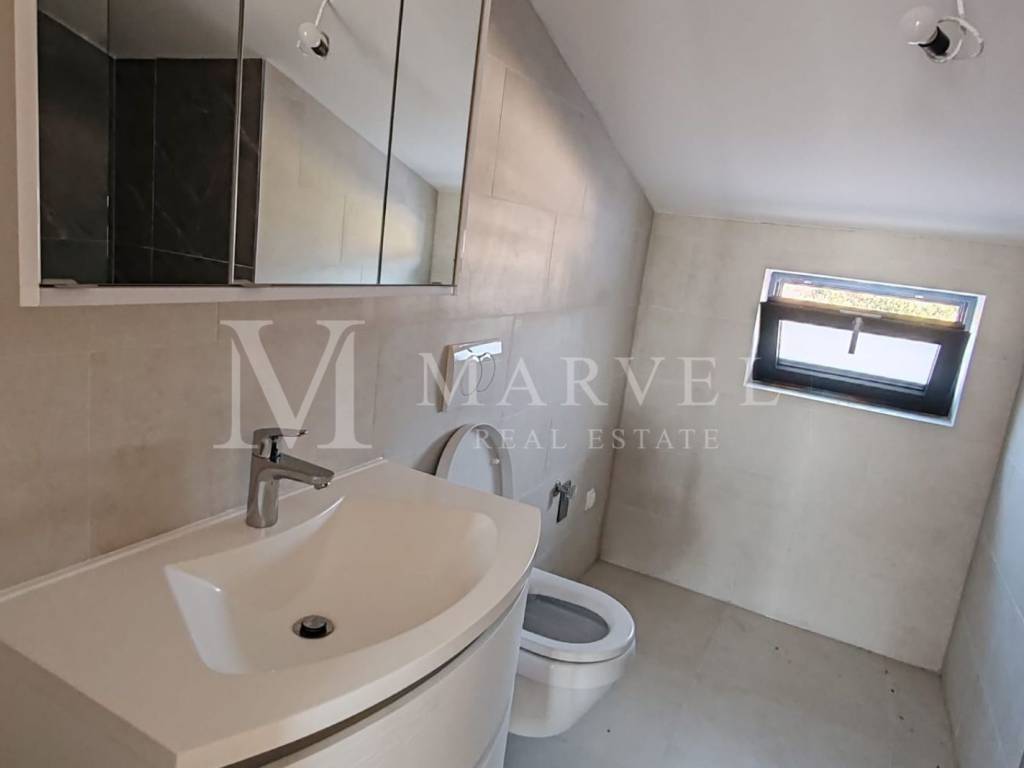In Punat, nur 600 m vom Meer entfernt, steht eine geräumige Maisonette-Wohnung im ersten und zweiten Stock einer modernen Stadtvilla zum Verkauf. Mit einer Gesamtfläche von 116,8 m bietet diese elegant gestaltete Wohnung einen herrlichen Meerblick und einen gepflegten Garten.
