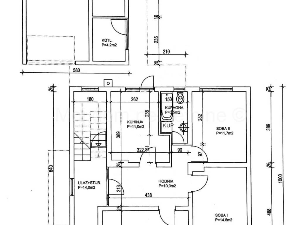 Prodaje se kuća katnica s terasom, balkonima i okućnicom veličine 623m2. Sastoji se od prizemlja veličine 106.21m2, 1.kata veličine 106.91m2 i stambenog potkrovlja veličine 86.05m2. Prizemlju i 1.katu je potrebna adaptacija, dok je stambeno potkrovlje uređeno 2014.godine (novi podovi, instalacije struje, vode i plina, nova krovna izolacija). Stanovi mogu funkcionirati kao zasebne stambene jedinice. Stambeno potkrovlje ima zasebno brojilo plina. Grijanje u kući je na plinsku kotlovnicu, solarne panele, a na prva dva kata i grijanje na drva. Krovište na kući je mijenjano 2013.godine. Kuća je legalizirana i ima Rješenje o izvedenom stanju. Nalazi se u blizini škole, vrtića i javnog prijevoza. Kući pripada i sporedni objekt u kojem se nalazi kotlovnica, 2 prostorije i garaža. Moguća kupnja putem stambenog kredita.