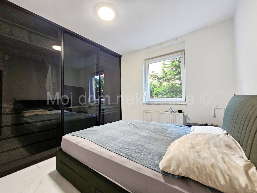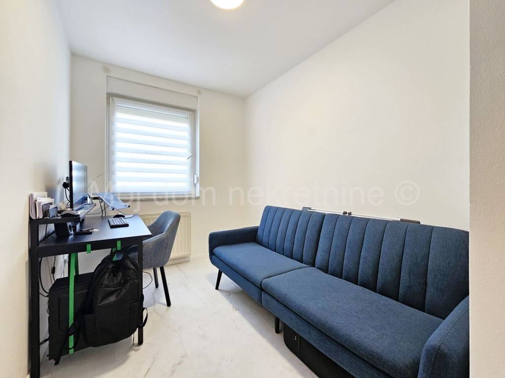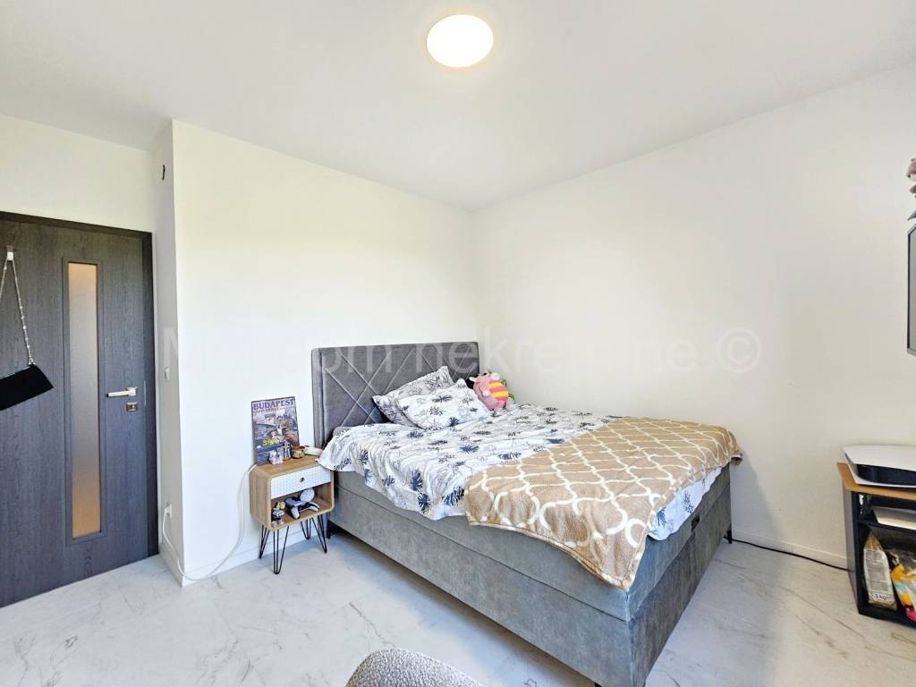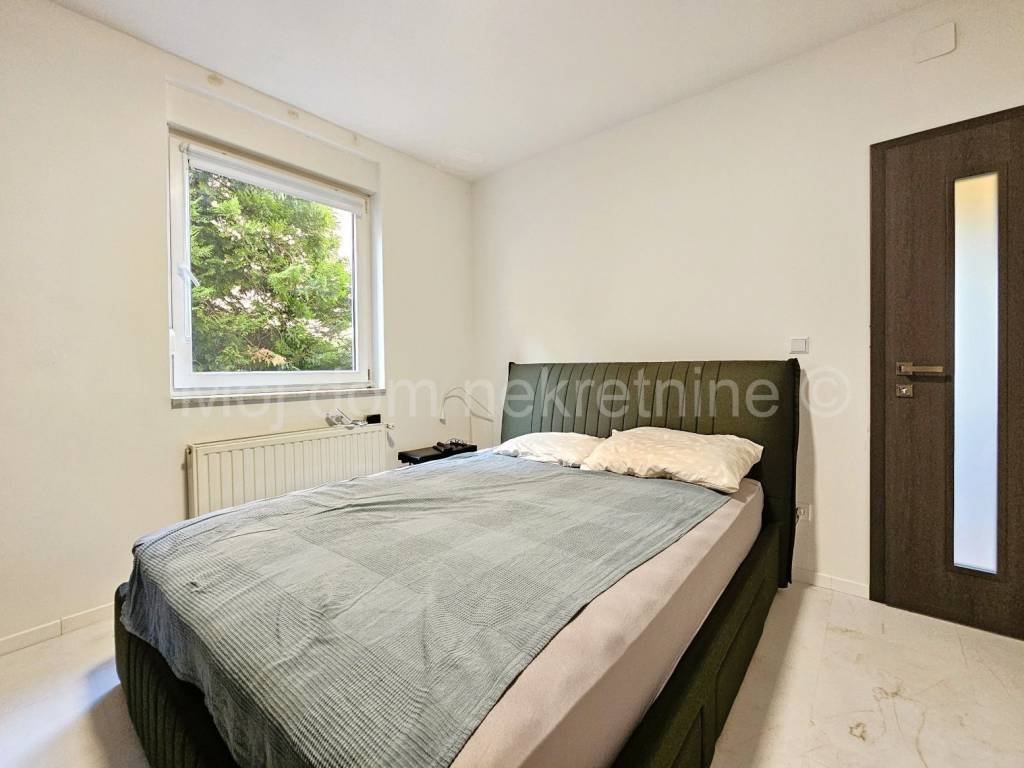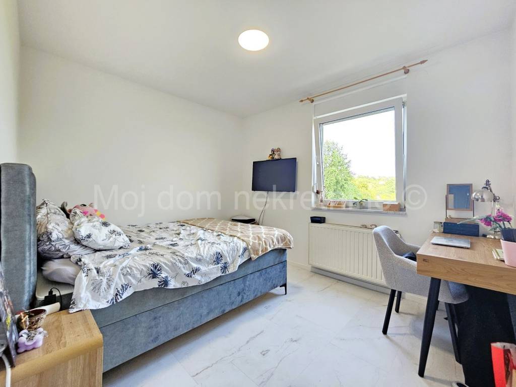Prodaje se uređen i namješten 4 soban stan s balkonom (ove godine uređeni su podovi i zidovi, postavljena nova unutarnja stolarija, novi radijatori te je stan opremljen novim namještajem i aparatima). Nalazi se na 1. katu manje zgrade. Stan je opremljen i klima uređajem, protuprovalnim vratima te PVC stolarijom s roletama. Smješten je u blizini svih bitnih sadržaja. Stanu pripada spremište u prizemlju, te 2 parkirna mjesta.