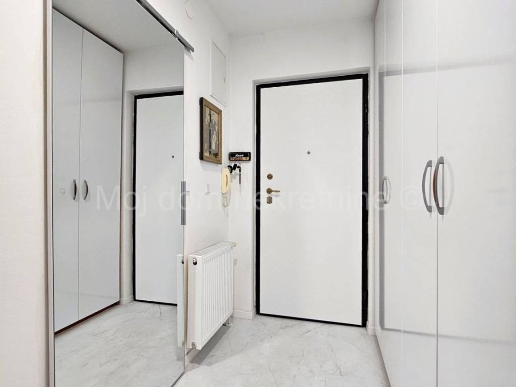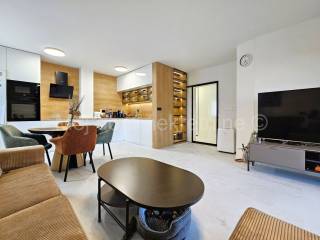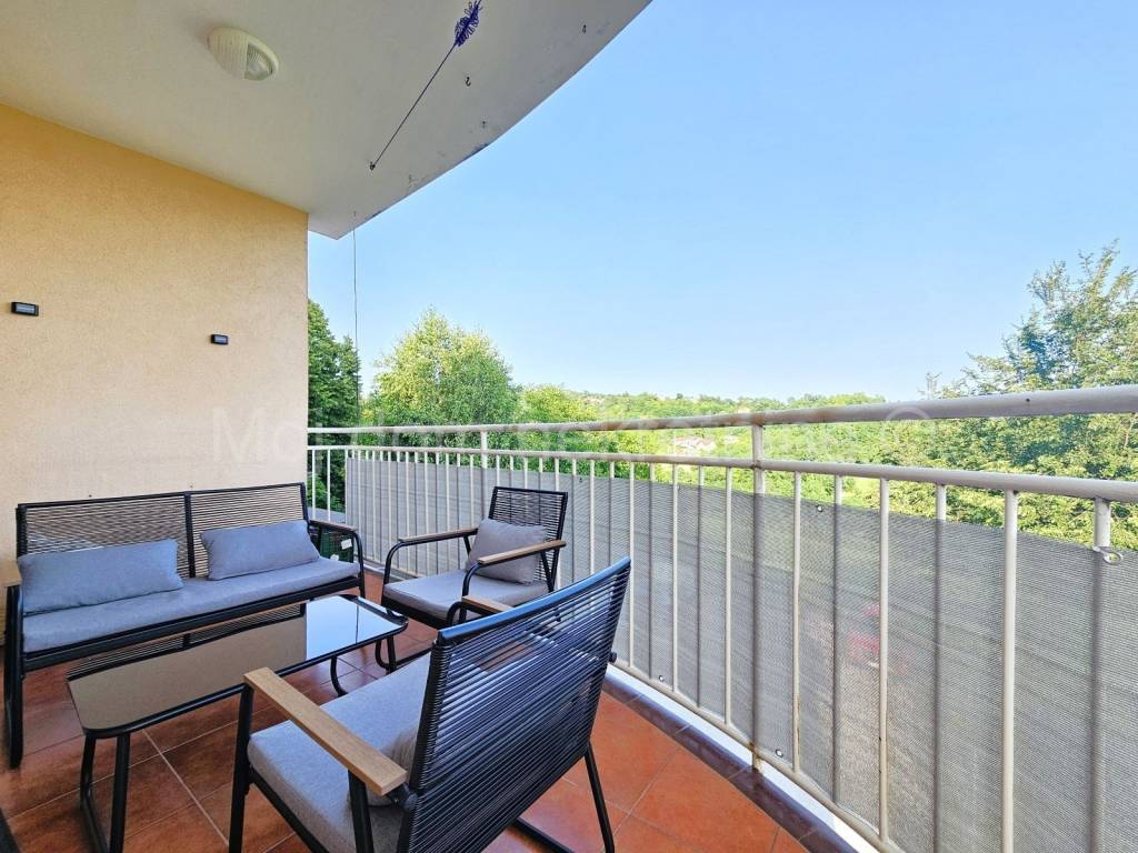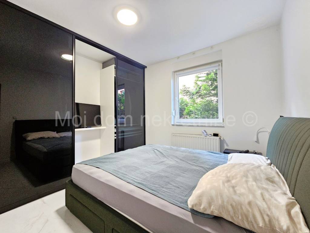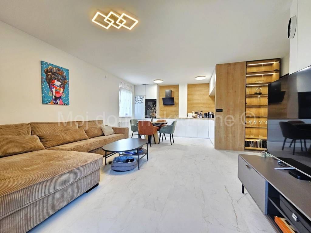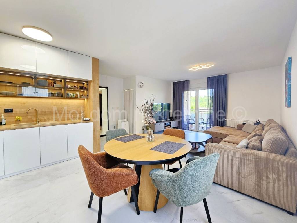 Prodaje se uređen i namješten 4 soban stan s balkonom (ove godine uređeni su podovi i zidovi, postavljena nova unutarnja stolarija, novi radijatori te je stan opremljen novim namještajem i aparatima). Nalazi se na 1. katu manje zgrade. Stan je opremljen i klima uređajem, protuprovalnim vratima te PVC stolarijom s roletama. Smješten je u blizini svih bitnih sadržaja. Stanu pripada spremište u prizemlju, te 2 parkirna mjesta.