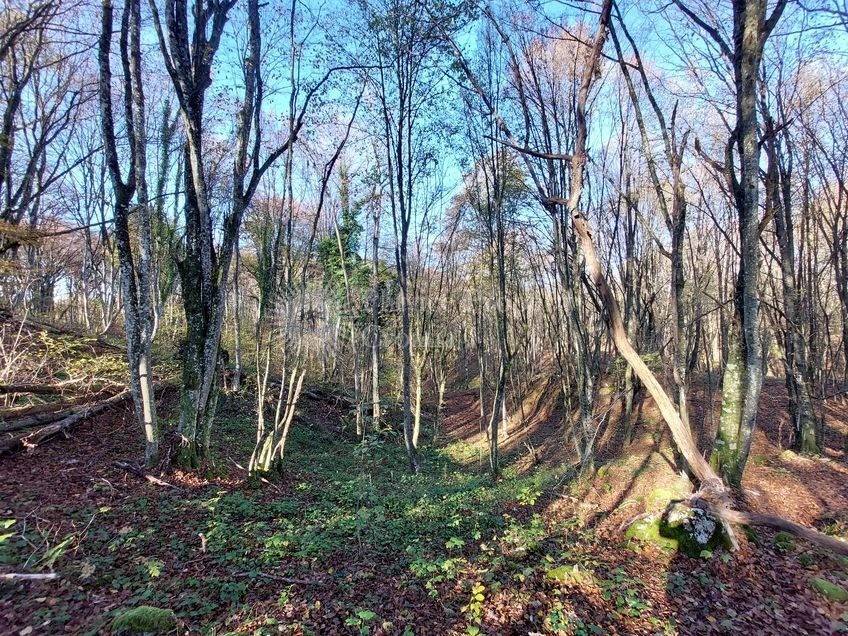 Gesamtgrundstück: 193,941 m Mischwald am Stück, davon eine Holzruine auf ca. 6,500 m in der Bauzone