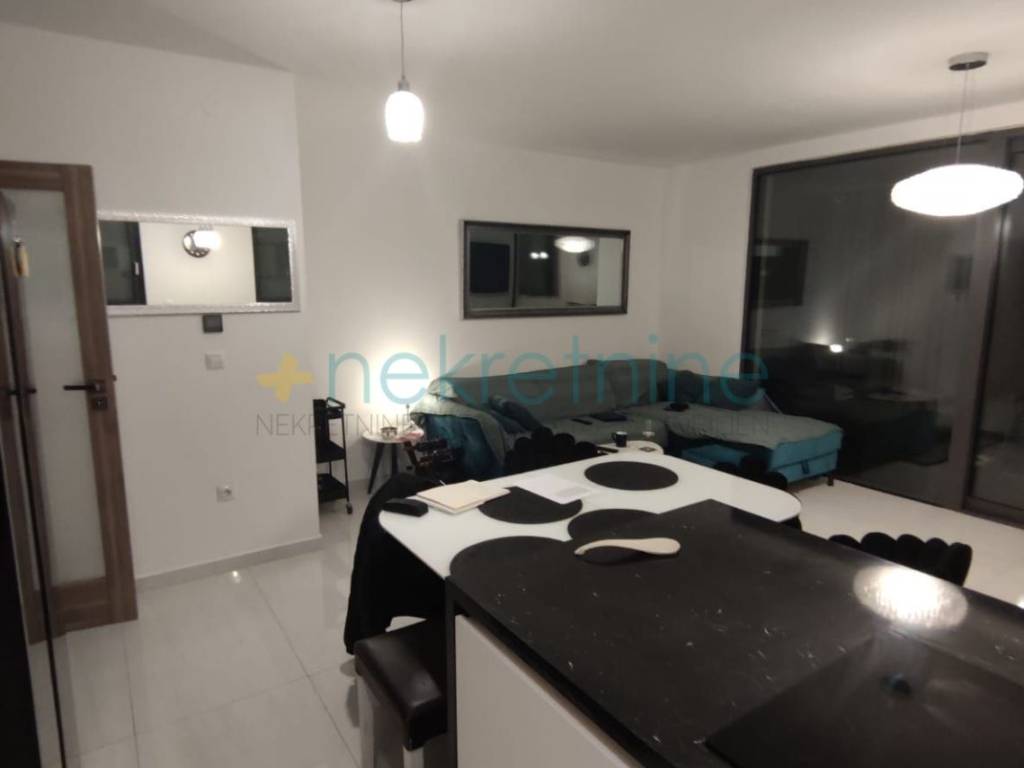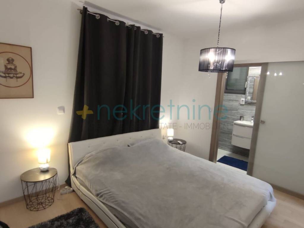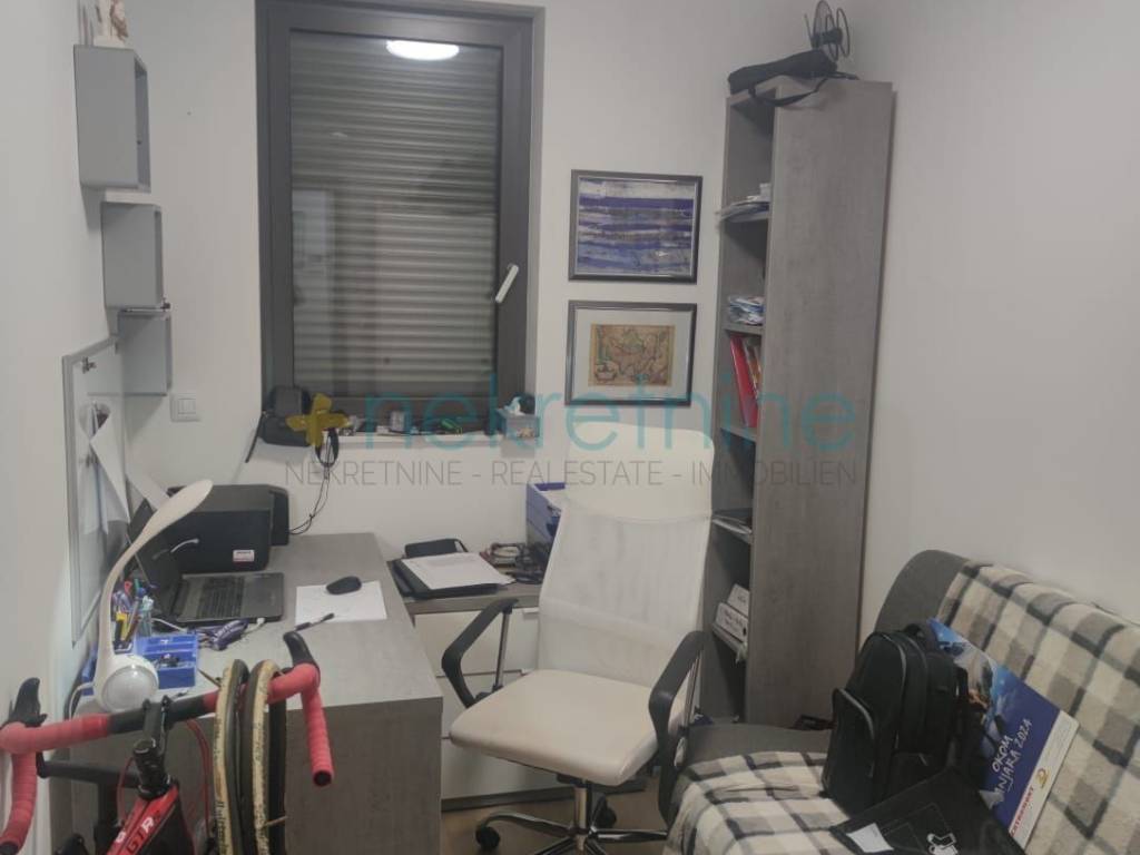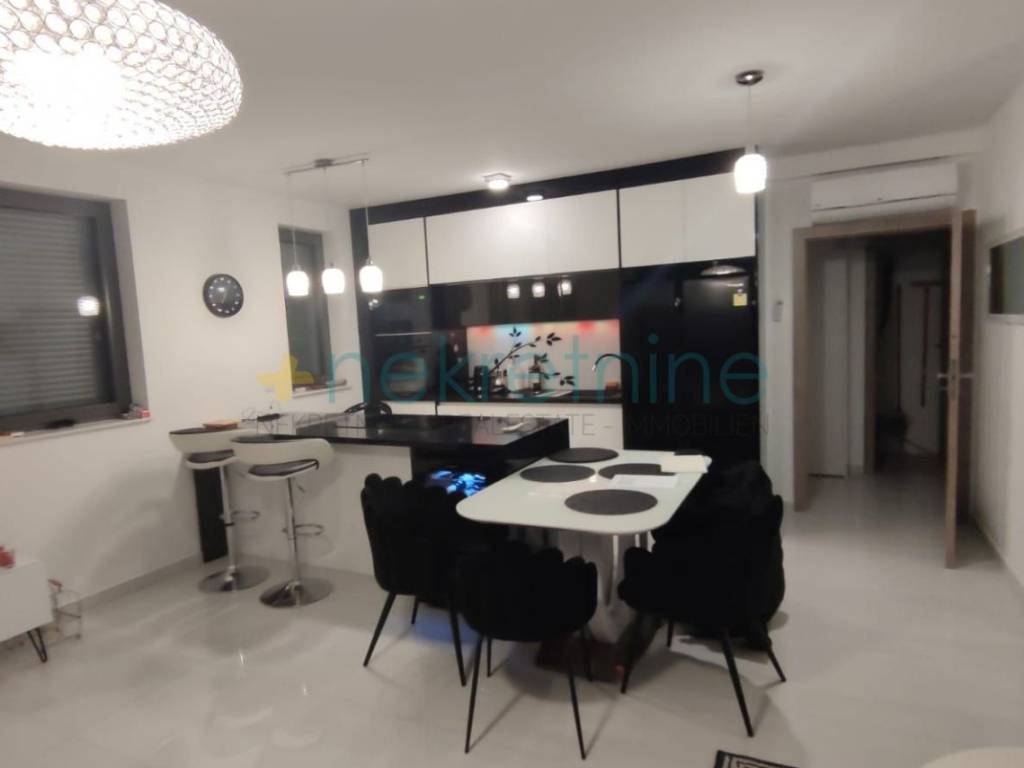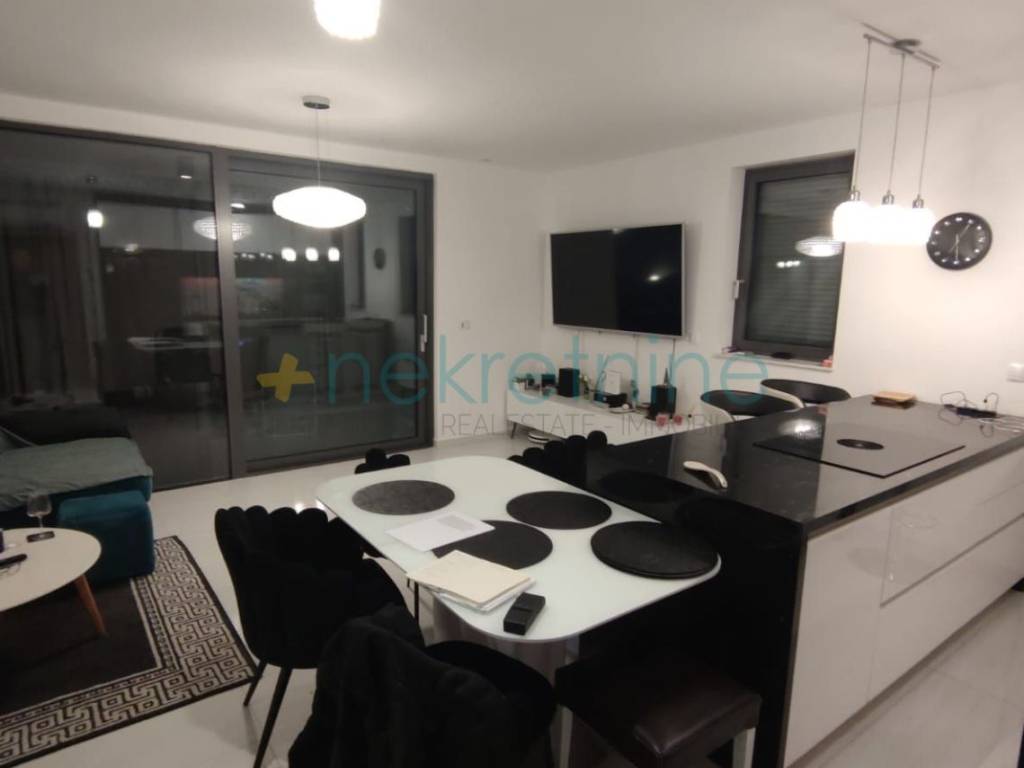 dnevnog boravka, kuhinje, blagovaone, dvije spavaće sobe od kojih jedna ima veliku garderobu i kupaonu, još jedne izdvojene kupaonice, ostave i hodnika te pripadaka stanu spremišta i parkirnog mjesta u garaži.
