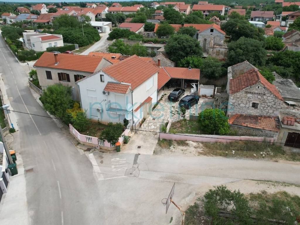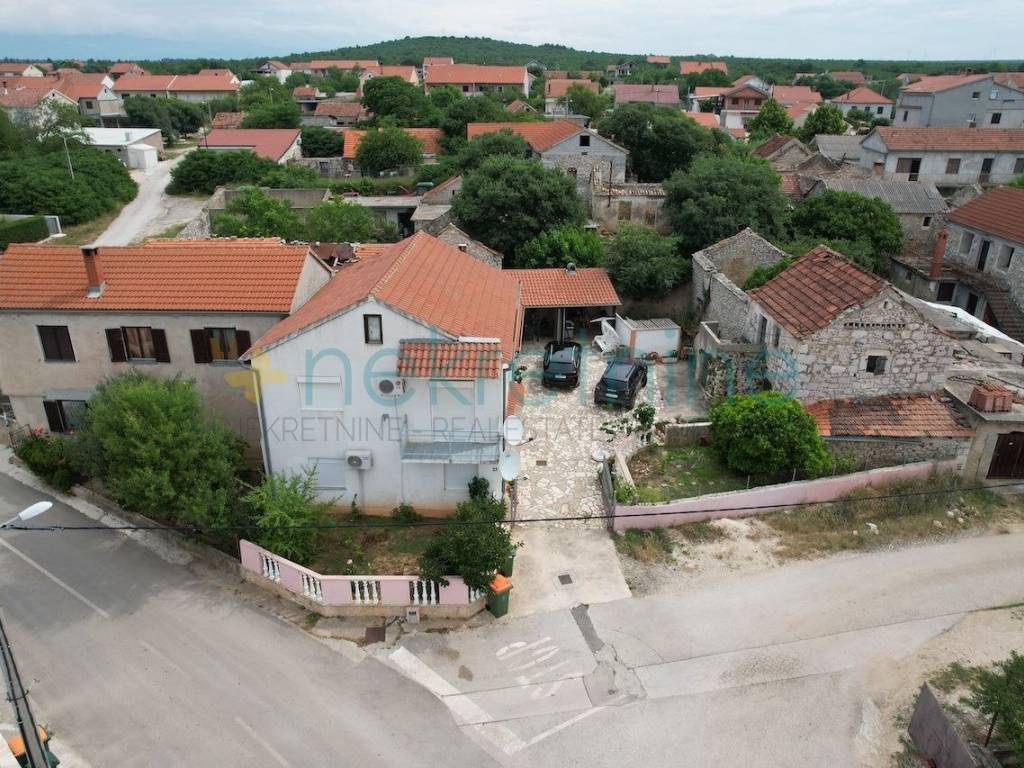 Na prodaju se nalazi kuća u idiličnom mjestu Škabrnja, smještenom nedaleko Zadra. Ova predivna nekretnina sastoji se od dva objekta koji su spojeni u nizu, pružajući vam obilje prostora i udobnosti.