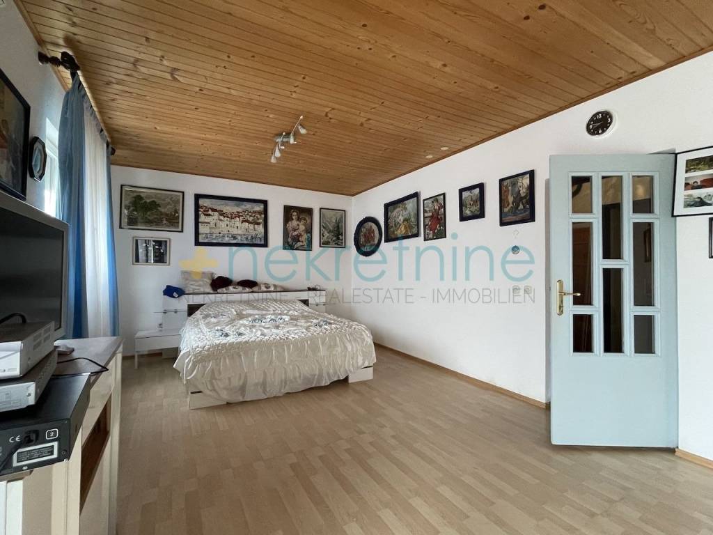 Prvi objekt prostire se na dva kata. U prizemlju se nalazi prostrani dnevni boravak, moderno uređeno kupatilo i tradicionalna konoba koja će vam omogućiti da uživate u toplini i gostoprimstvu domaćeg ambijenta. Na katu se nalaze dvije prostrane spavaće sobe i još jedno kupatilo, pružajući vam privatnost i udobnost za odmor i opuštanje.