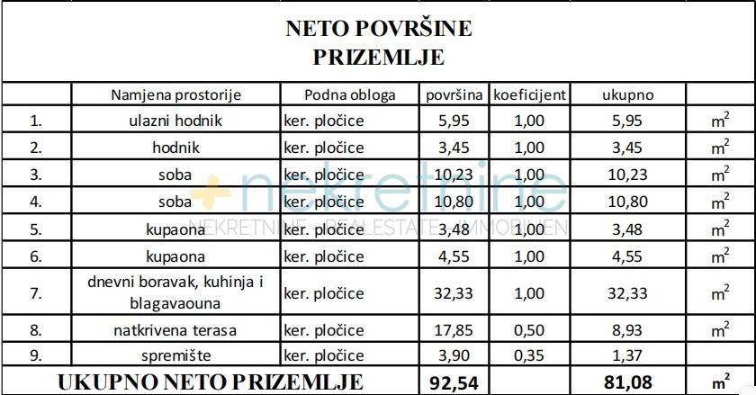 Parkirna mjesta: 1 za prizemlje, 2 za prvi kat, 2 i krovna terasa za drugi kat