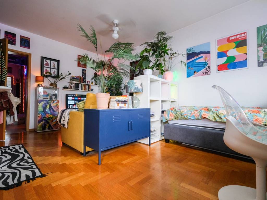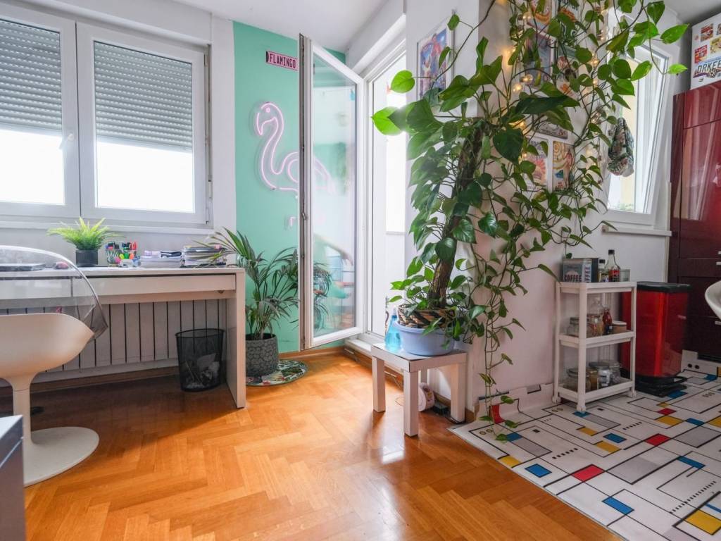 Mali, ali iznimno šarmantan stan, odiše osobnošću - šaren, pun biljaka i uređen s puno stila. Smješten je u popularnom zagrebačkom kvartu Vrbani, poznatom po odličnoj infrastrukturi, blizini jezera Jarun i izvrsnoj prometnoj povezanosti.