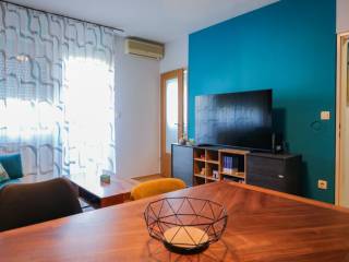 Stan je vrlo lijepo namješten i kompletno opremljen, prozračan i svijetao, izuzetno uredan i čist, toplog ugođaja i odličnog rasporeda. Sastoji se od ulaznog hodnika, dnevnog boravka, balkona, kuhinje, spavaće sobe, kupaonice i ostave. Također mu pripada i spremište u podrumu zgrade.