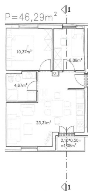 Die Wohnung besteht aus einem großzügigen, offenen Wohnbereich, der Küche, Esszimmer und Wohnzimmer miteinander verbindet und Zugang zu einem Balkon bietet – ideal für den Morgenkaffee oder zum Entspannen am Abend. Die Wohnung verfügt über zwei Schlafzimmer und ein modern ausgestattetes Badezimmer. Im Badezimmer ist ein Heizkörper vorgesehen, und im Wohnzimmer wird eine Klimaanlage installiert. Die Bodenbeläge können vom Käufer individuell gewählt werden, um den Raum nach eigenen Wünschen zu gestalten.
