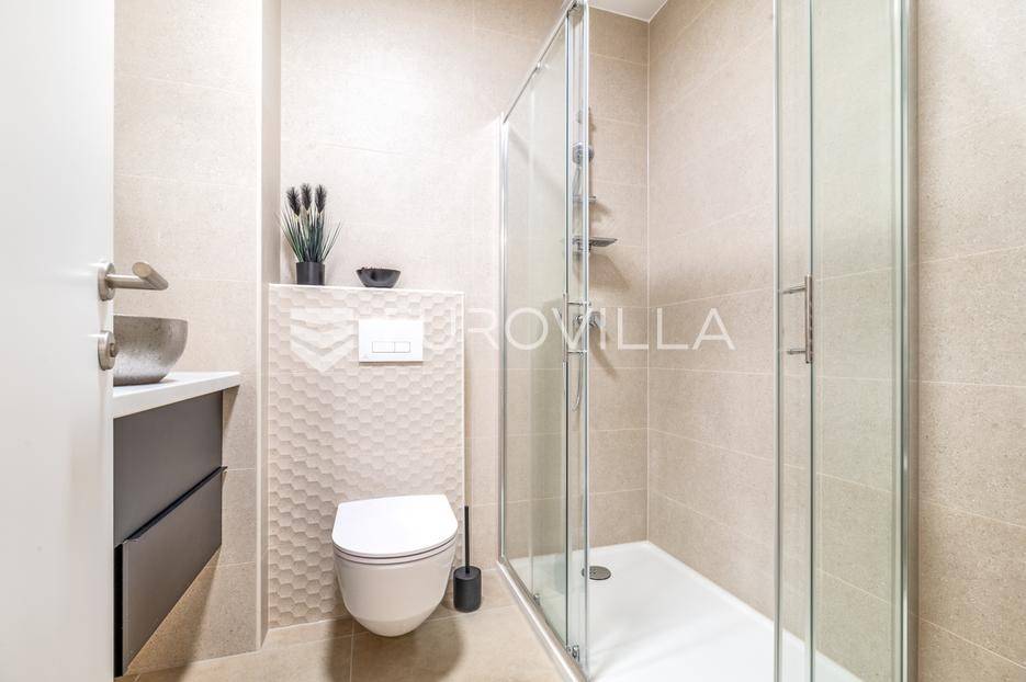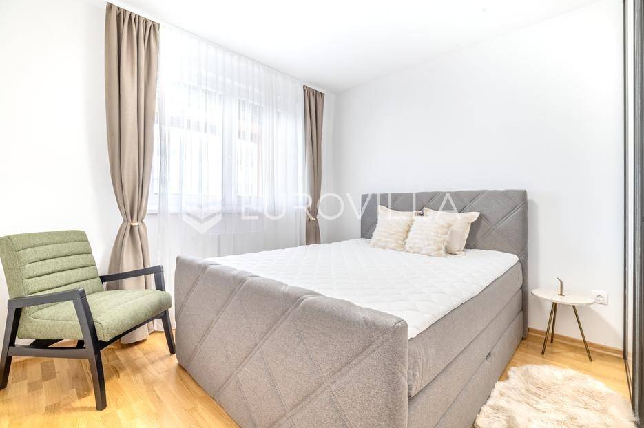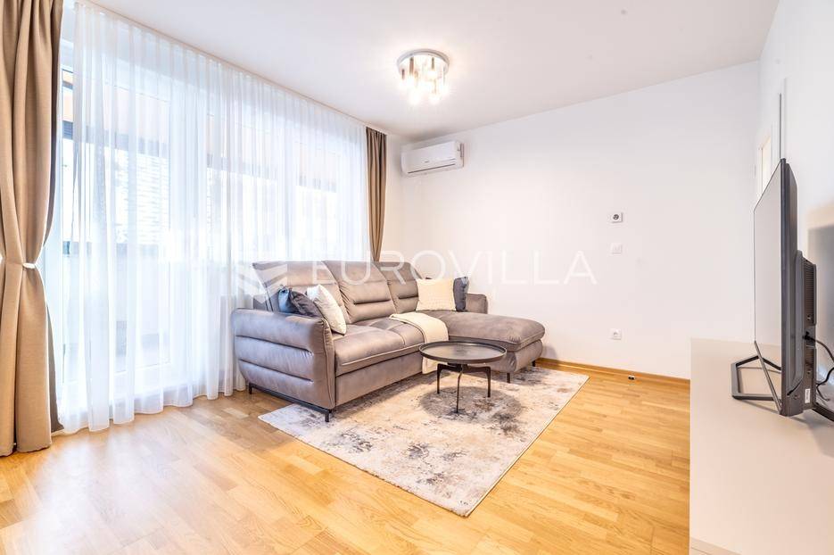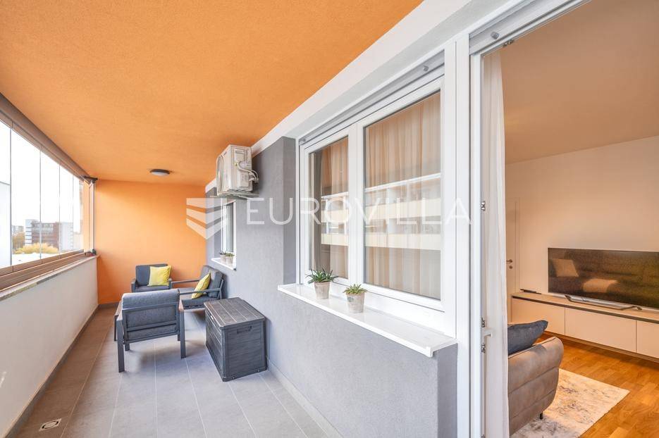 Zagreb, Lovinčićeva, dvosoban stan NKP 57 m2 za najam smješten na sedmom katu novogradnje s liftom, prvi najam. Pripadaju mu i dva garažna parkirna mjesta.Sastoji se od ulaznog hodnika, dnevnog boravka s kuhinjom te izlazom na prostranu loggiu, spavaće sobe i kupaonice. Pripadaju mu i dva garažna parkirna mjesta.Stan je opremljen svim aparatima (kuhinjski aparati, novo posuđe, perilica sa sušilicom), cjelokupan namještaj je nov i nikad korišten.Zbog svoje mikrolokacije, kvalitetne izvedbe i opremljenosti, pruža miran i ugodan život. U blizini centra, javnog prijevoza, trgovina te svih potrebnih sadržaja.Cijena s jednim garažnim mjestom je 1000€.Ostale informacije dostupne su na upit.