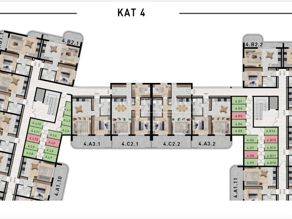Das Angebot beinhaltet 2-Zimmer-Apartments (1 Schlafzimmer und Wohnzimmer), 3-Zimmer-Apartments (2 Schlafzimmer und Wohnzimmer) und 4-Zimmer-Apartments (3 Schlafzimmer und Wohnzimmer) mit Meerblick.