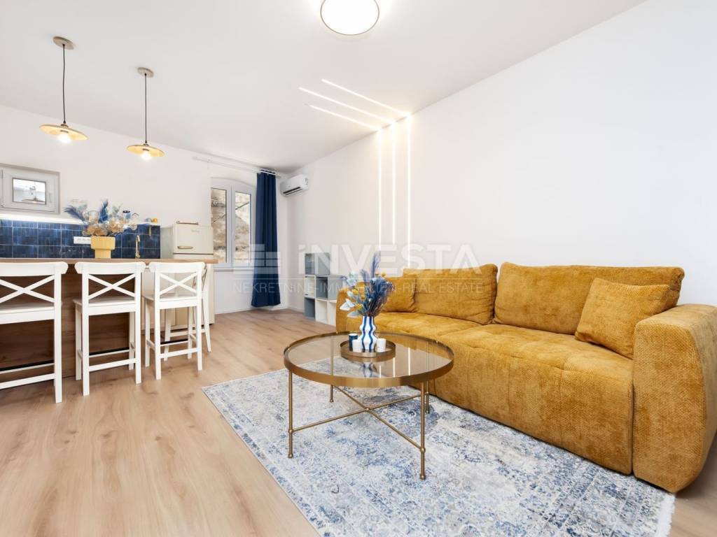 Die Wohnung wurde im Jahr 2025 komplett renoviert, mit besonderer Sorgfalt für jedes Detail. Die Kombination aus authentischem istrischem Charme und modernem Design schafft einen Raum, der Wärme und Eleganz ausstrahlt und zugleich den Komfort modernen Wohnens bietet.