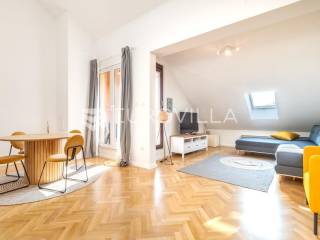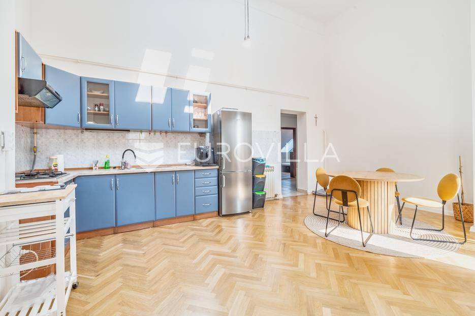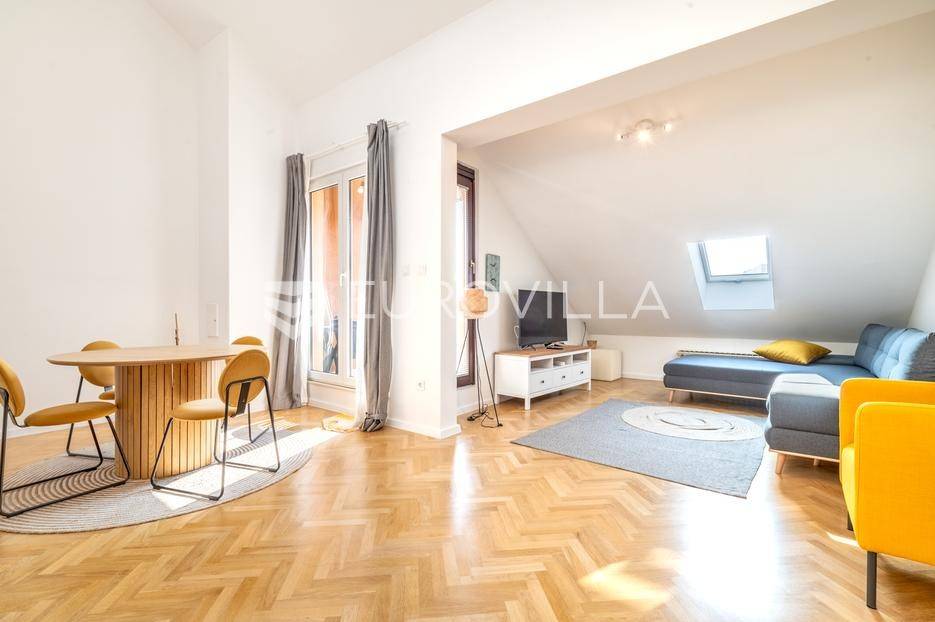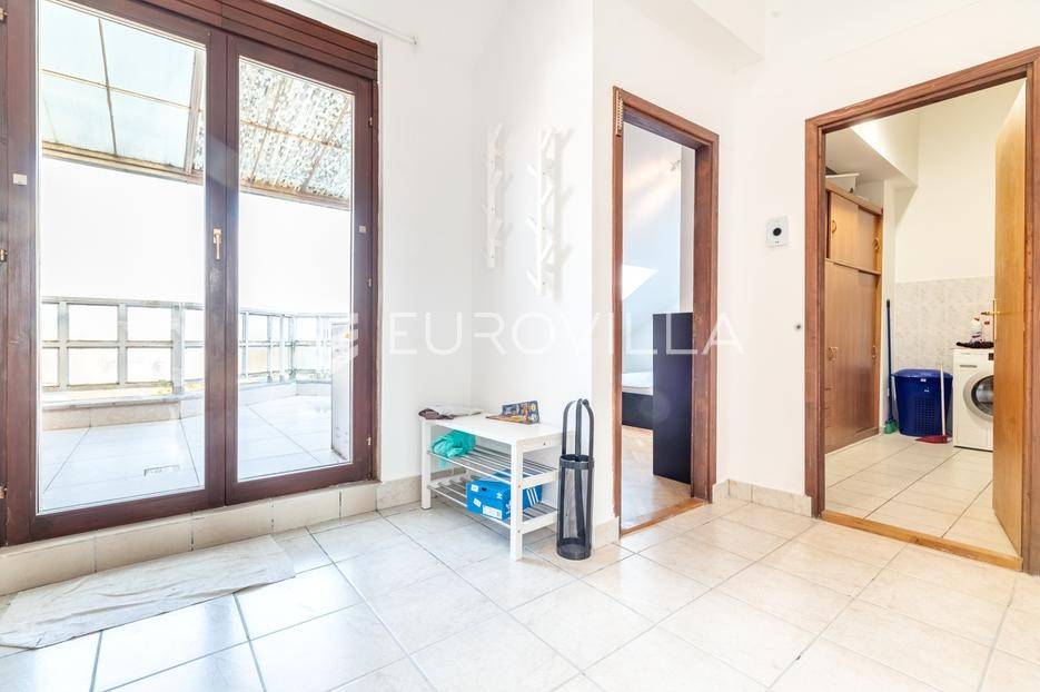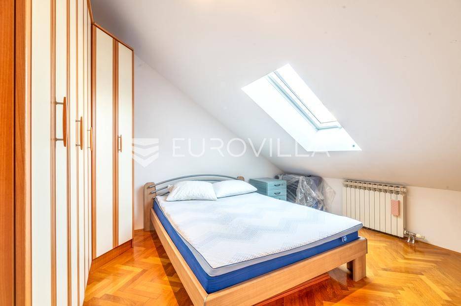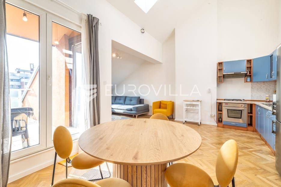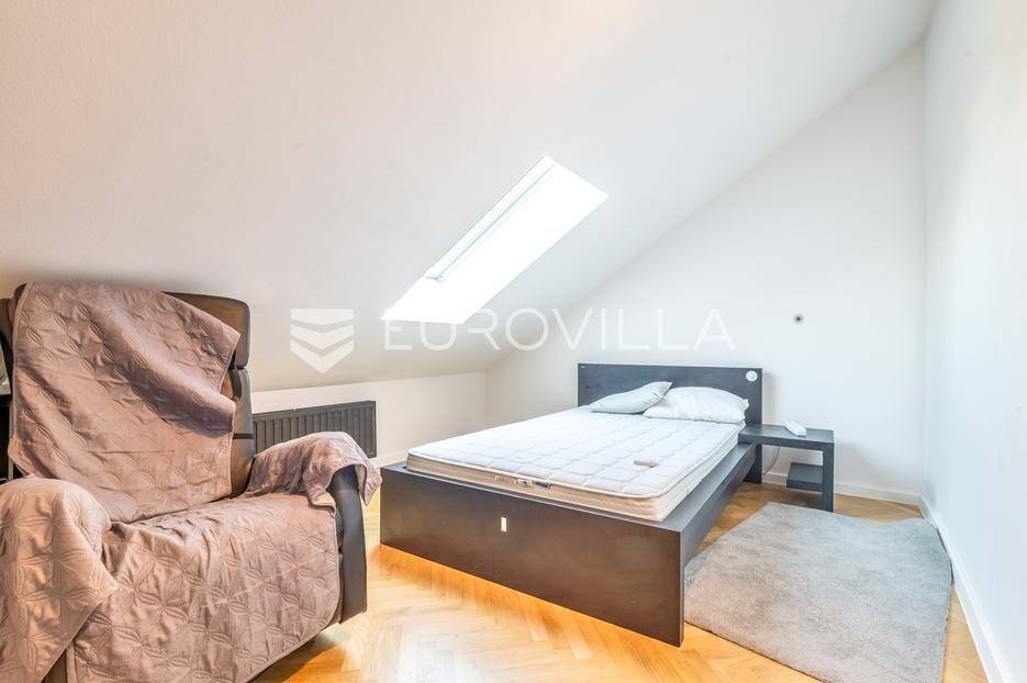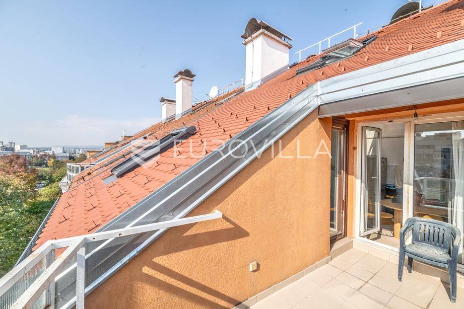 Ulica Dubrava, trosoban stan neto korisne površine 86 m2 (s uračunatim koeficijentima radi kosina) na petom katu (bez lifta) stambeno-poslovnog kompleksa izgrađenog krajem 1990-tih godina. Orijetacije sjever-jug. U zgradi koja je prošla bez oštećenja u potresu (zelena naljepnica) i redovito je održavana.Stan se sastoji od ulaznog prostora, ostave/vešeraja, dnevnog boravka s kuhinjom i blagovaonicom otvorenog tlocrta i izlazom na balkon s pogledom na južni dio grada, dvije spavaće sobe, balkona na sjevernu stranu s pogledom na Medvednicu, kupaonice i toaleta.Prije tri godine obnovljeno je krovište zgrade pa su u stanu zamijenjeni krovni prozori marke Velux (eletrični i s daljinskim upravljanjem), balkon koji je orijentiran prema sjevernoj strani zgrade renoviran je 2023. godine. Započeta renovacija (idejni projekt moguć na uvid) pa je postavljen novi bojler (mogućnost upravljanja grijanjem s mobitelom). Grijanje je etažno plinsko, a brojila za struju i plin su odvojena. Vanjska stolarija je kombinacija drvene i PVC stolarije s dvoslojnim staklima, što doprinosi energetskoj učinkovitosti stana i kvaliteti zvučne izolacije.Nalazi se na odličnoj prometno povezanoj lokaciji u tramvaj zoni. U neposrednoj blizini svih bitnih sadržaja (škole, vrtići, LIDL i Konzuma, banka, ljekarna, park i sl.).Ostale informacije na upit.