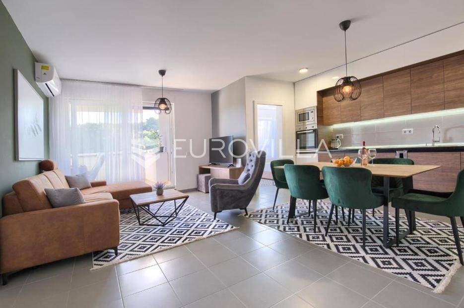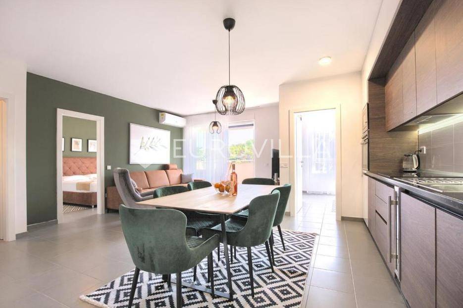 U šarmantnom turističkom naselju Premantura smjestio se potpuno moderno uređeni dvosobni stan ukupne stambene površine od 85,12 m2 u prizemlju novije zgrade, lokacijski se nekretnina nalazi prvi red do mora i plaža.Stan se sastoji od dvije komforne spavaće sobe, kupatila, kuhinje s blagovaonicom i dnevnim boravkom po open space konceptu, prostrane natkrivene terase s koje se pruža predivan pogled na kamp Stupice i more, te vanjskog parkirnog mjesta.Grijanje/hlađenje je riješeno putem sistema klimatizacije.Zbog blizine svih bitnih sadržaja i poznatih turističkih mjesta kao što je Rt Kamenjak i kamp Stupice, ova nekretnina lokacijski je idealna za turistički najam ili za obiteljski život.Stan je u uspješnom turističkom najmu te kao takav je siguran povrat investicije dok zbog pozicije koju pruža mogao bi nekome biti dom iz snova ili oaza za odmor iz snova.Za više informacija slobodno nas kontaktirajte.