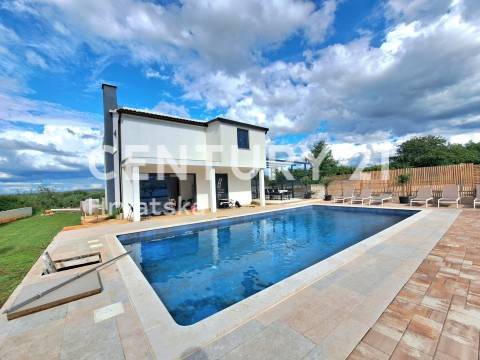 Kuća raspolaže s tri komforne spavaće sobe, prostranim dnevnim boravkom, dvjema modernim kupaonicama, te velikom terasom za uživanje u suncu i pogledima. Vanjski dio dizajniran je za opuštanje i zabavu: tu je bazen od 50 m2 koji je savršen za osvježenje tijekom toplih ljetnih dana, kao i ograđeno i uređeno dvorište idealno za druženje ili pripremu roštilja.