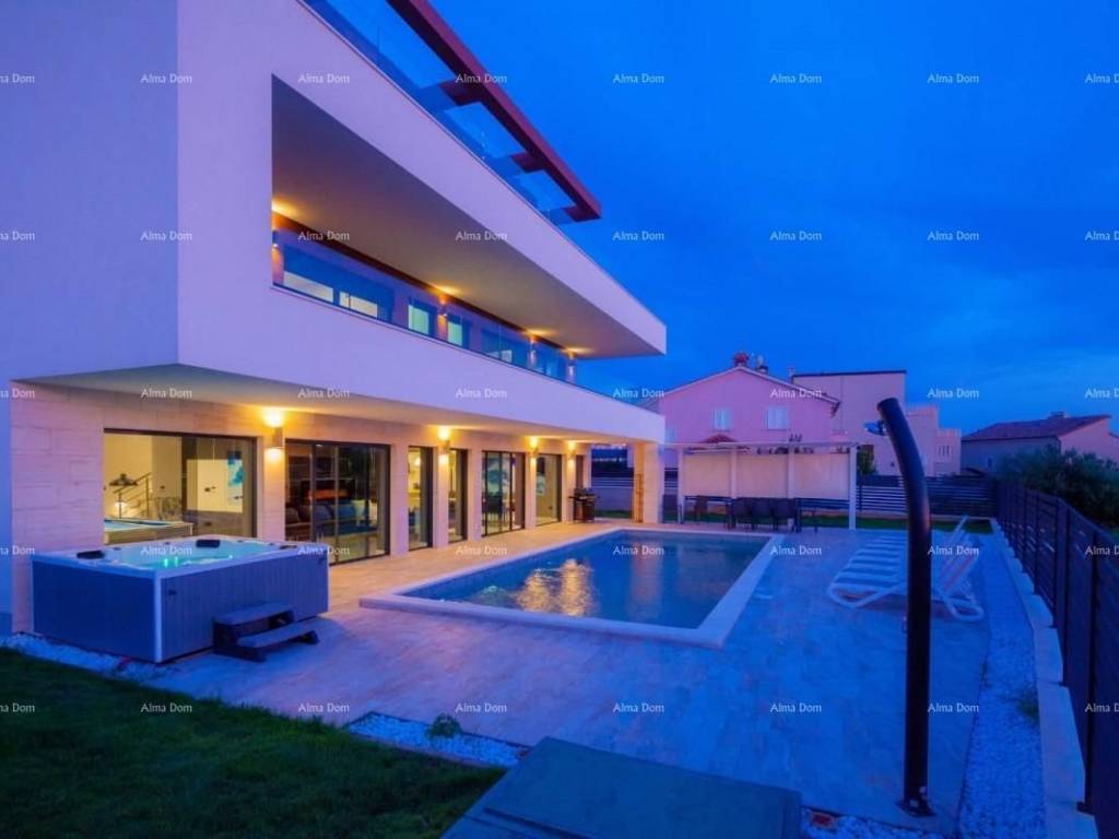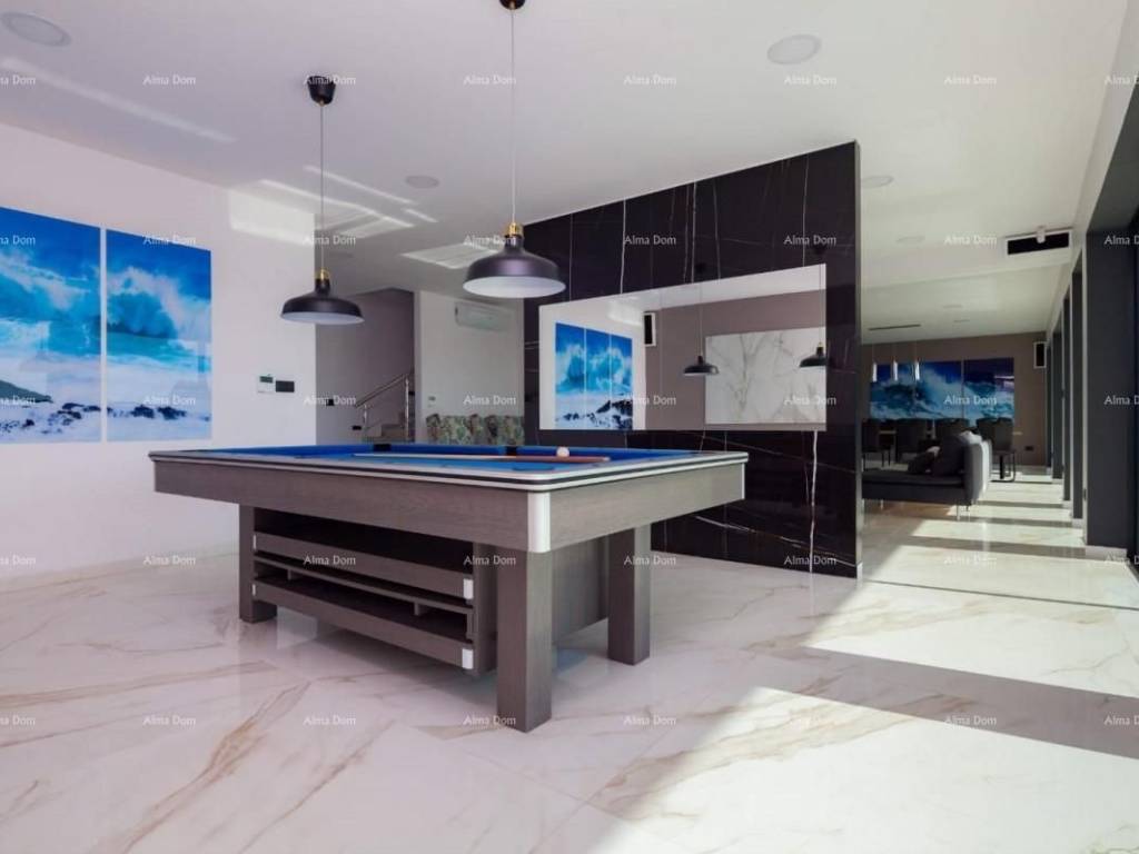 Eine schöne moderne Villa.Wohnfläche 480m2. Im Erdgeschoss gibt es ein Wohnzimmer, Küche, Billardzimmer, Gäste-WC.Auf der 1. Etage befinden sich vier Schlafzimmer, jedes Zimmer hat ein eigenes Bad. Alle Schlafzimmer teilen eine große Terrasse auf Südseite des Hauses mit Blick aufs Meer und Inseln.In 2. Etage befindet sich ein weiteres Schlafzimmer mit Meerblick, Fitnessraum, Whirlpool, Sauna und  große Terrasse.Im Garten der Villa gibt es einen Swimmingpool und eine Liegewiese, einen Whirlpool, einen Grillplatz und einen Parkplatz.Info:+385 98420885Azra Valjevac+385 91 611 5706azra@almadominvest.com