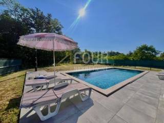 Die geräumige Terrasse bietet einen idealen Raum zum Entspannen und Genießen der frischen Luft, mit direktem Zugang zum gepflegten Garten mit Pool, während der Grillplatz einen perfekten Ort für Treffen bietet.