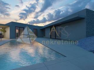 Entdecken Sie dieses moderne, eingeschossige Haus mit Pool auf einem großzügigen Grundstück von 974 m.