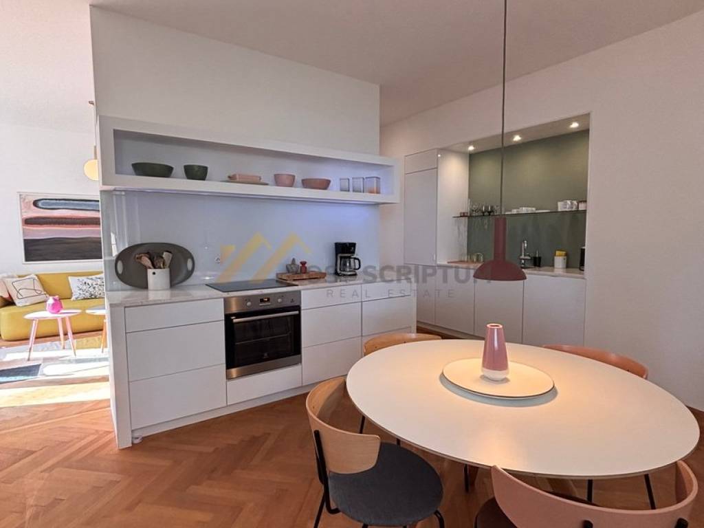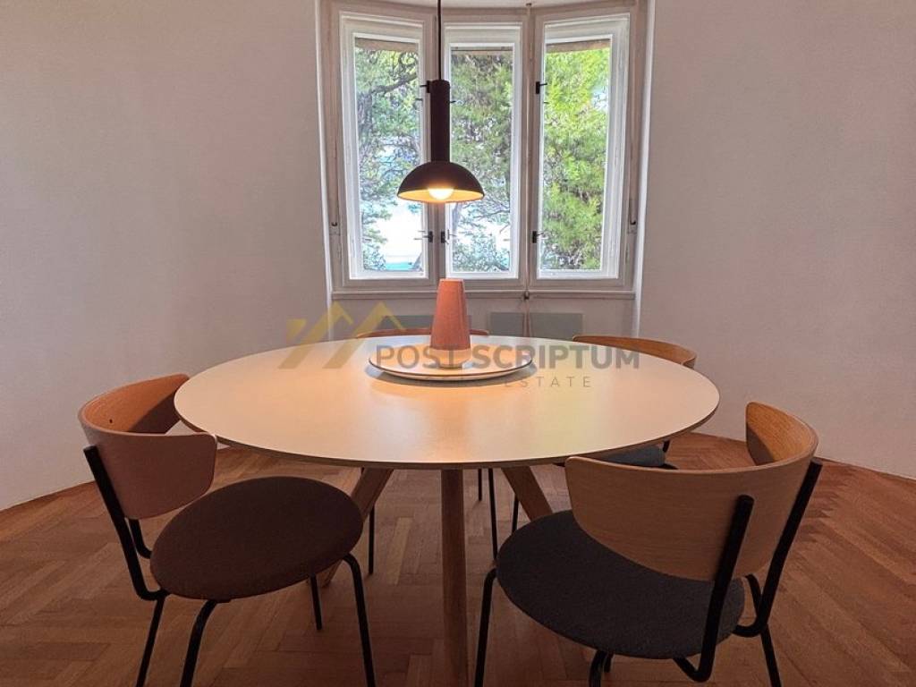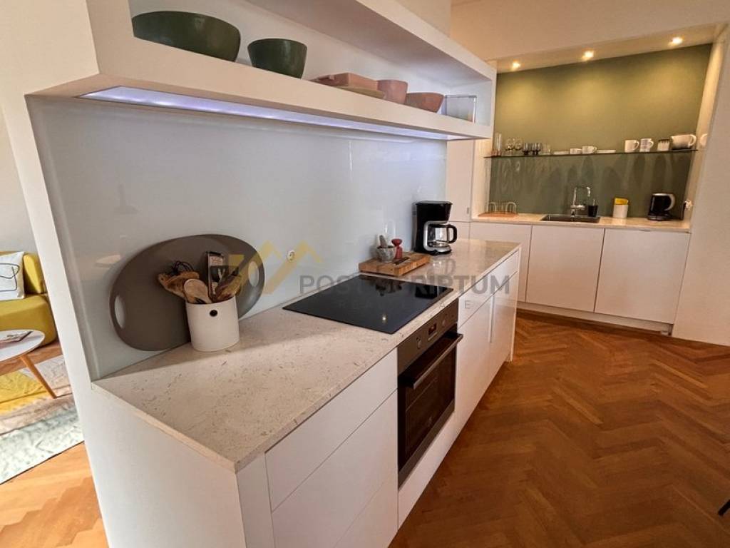 Ugodan, modernog i lijepog uređenja, opremljen svim namještajem i uređajima (TV, dvije klime, perilica rublja, perilica posuđa).