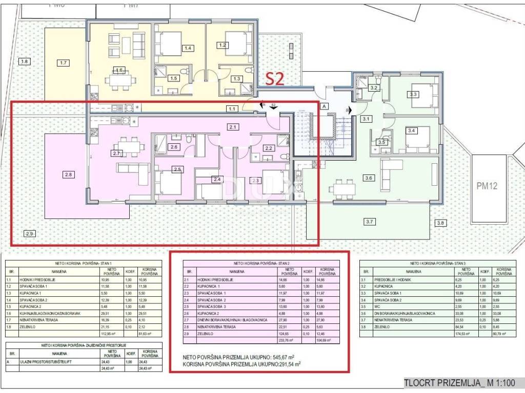 ŠIBENIK, SRIMA – NEUBAU, Drei-Zimmer-Wohnung mit großem Garten, nur 70 m vom Meer entfernt – eine Rarität auf dem Markt! DUX präsentiert die moderne Wohnung S2 in einem Neubau mit insgesamt acht Wohneinheiten in äußerst attraktiver Lage in Srima, nur 70 Meter vom Meer und Strand entfernt, in zweiter Reihe. Diese elegante Immobilie vereint hochwertige Bauweise, modernes Design und eine prestigeträchtige Lage und ist somit die ideale Wahl für ein ruhiges Familienleben, einen erholsamen Urlaub oder als Kapitalanlage mit exzellentem Vermietungspotenzial. Die Wohnung befindet sich im Erdgeschoss und bietet direkten Zugang vom Wohnbereich zu einer großzügigen Terrasse und einem beeindruckenden, 124,65 m² großen privaten Innenhof – eine echte Rarität auf dem Markt. Dank der Südostausrichtung ist die Wohnung lichtdurchflutet und bietet den ganzen Tag über eine angenehme Atmosphäre. Die Nettofläche der Wohnung beträgt 233,76 m², die nutzbare Wohnfläche 104,69 m². Beschreibung der Wohnung: Wohnung S2 bietet einen funktionalen Grundriss mit drei Schlafzimmern und zwei Badezimmern, der optimal auf Komfort und Bequemlichkeit ausgelegt ist. Der offene Wohn-, Küchen- und Essbereich führt auf eine große Terrasse und in einen privaten Garten – ideal zum Essen im Freien und um die ruhige mediterrane Umgebung zu genießen. Das Hauptschlafzimmer verfügt über ein eigenes Badezimmer, die beiden anderen Schlafzimmer teilen sich ein Badezimmer. Die ebenerdige Lage ermöglicht einen bequemen Zugang, während der großzügige Innenhof ein besonderes Gefühl von Privatsphäre und Luxus vermittelt. Zur Wohnung gehört außerdem ein Parkplatz, was die Praktikabilität und den Wert dieser Immobilie zusätzlich erhöht. Grundriss (Nettofläche): • Flur und Eingangsbereich: 14,66 m² • Badezimmer 1: 5,60 m² • Schlafzimmer 1: 11,97 m² • Schlafzimmer 2: 7,99 m² • Schlafzimmer 3 (Hauptschlafzimmer): 13,60 m² • Badezimmer 2 (en suite): 4,88 m² • Wohnzimmer, Küche und Esszimmer: 27,90 m² • Terrasse: 22,51 m² • Garten: 124,65 m² Gesamtnettofläche: 233,76 m² Nutzfläche: 104,69 m² Ausstattung und Merkmale: • Entfernung zum Meer und Strand: 70 m / 1 Gehminute • Erdgeschoss mit direktem Zugang zur Terrasse und zum Garten • Drei-Zimmer-Wohnung mit zwei Bädern Badezimmer • Hauptschlafzimmer mit eigenem Bad • Fußbodenheizung in Bädern und Wohnzimmer • Klimaanlage in allen Räumen • PVC-Fenster mit Dreifachverglasung und elektrischen Rollläden • Wärmedämmfassade (10 cm) • Hochwertige Keramik und Sanitärausstattung namhafter Hersteller • Hochwertige Materialien und Verarbeitung • Renommiertes Bauunternehmen mit nachweislicher Erfolgsbilanz • Ein Parkplatz im Preis inbegriffen • Privater Garten von 124,65 m² – ein außergewöhnlicher Vorteil und eine Rarität Dieses moderne Neubaugebäude in Srima bietet eine hervorragende Gelegenheit, eine luxuriöse Wohnung in Meeresnähe zu erwerben, die Komfort, Funktionalität und eine prestigeträchtige Lage vereint. Für weitere Informationen und Besichtigungen kontaktieren Sie uns bitte. Srima ist ein ruhiges und charmantes Küstendorf, bekannt für seine langen Kiesstrände, das kristallklare Meer und die entspannte mediterrane Atmosphäre. Dank der Nähe zu Vodice und Šibenik bietet es die perfekte Balance zwischen Ruhe und allen Annehmlichkeiten für ein komfortables Leben. Sehr geehrte Kunden, die Vermittlungsprovision wird gemäß den Allgemeinen Geschäftsbedingungen berechnet: www.dux-nekretnine.hr/opci-uvjeti-poslovanja ID CODE: 43101 Dux Zadar Mob: +385 91 312 1121 Tel: +385 91 480 8808 E-mail: info@dux-nekretnine.hr www.dux-dalmacija.com