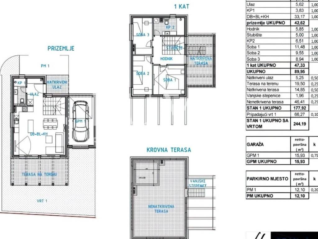 Zur Immobilie gehören zudem eine großzügige Dachterrasse von 46,41 m2, eine überdachte Terrasse im ersten Stock sowie eine Terrasse im Erdgeschoss und ein Garten.