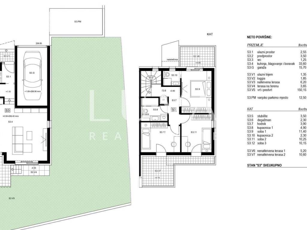 Zum Verkauf steht eine Wohneinheit mit der Bezeichnung S3, Teil eines Projekts mit 12 Reihenhäusern/-wohnungen in Perjavica.