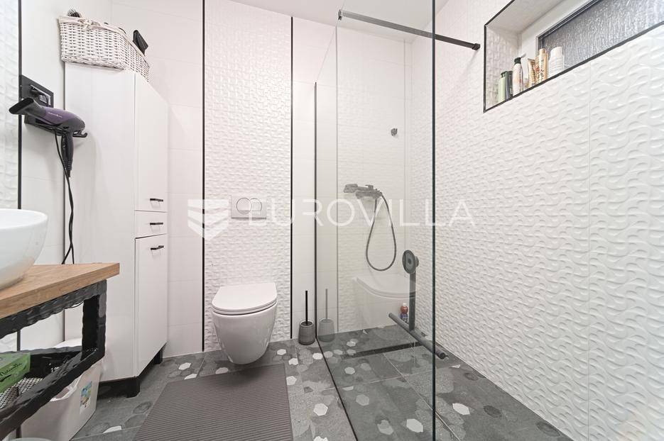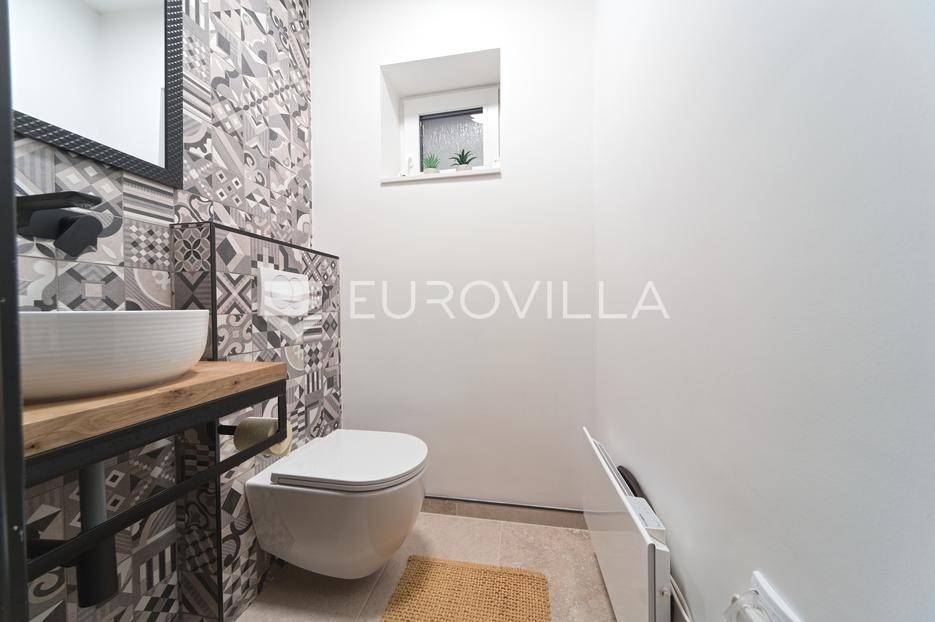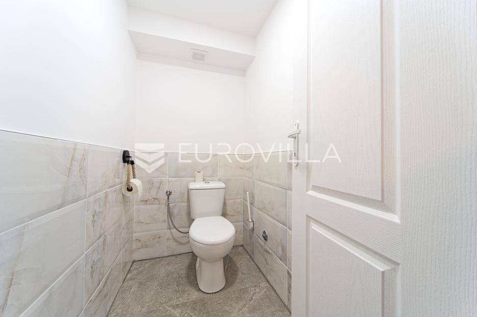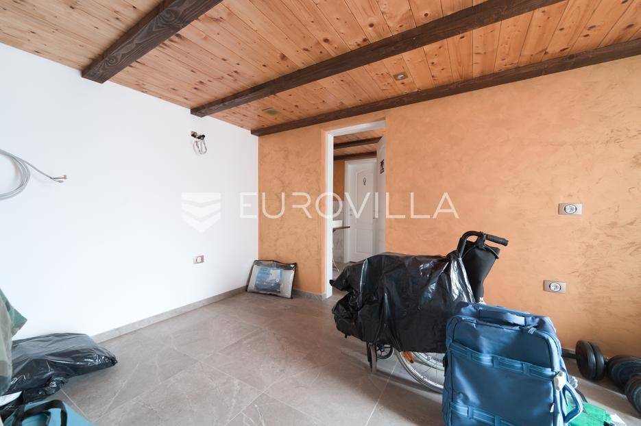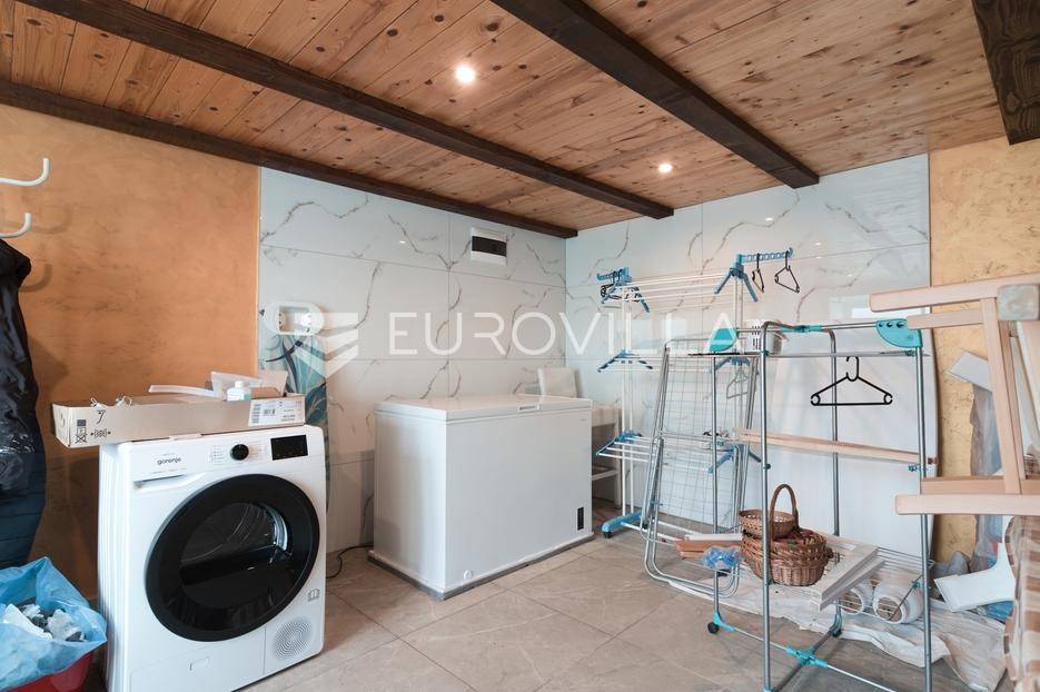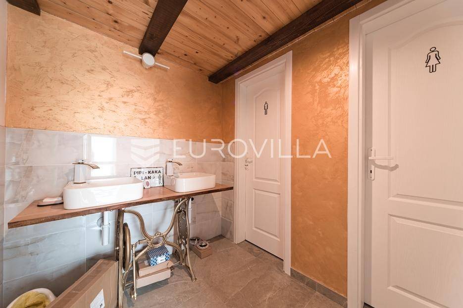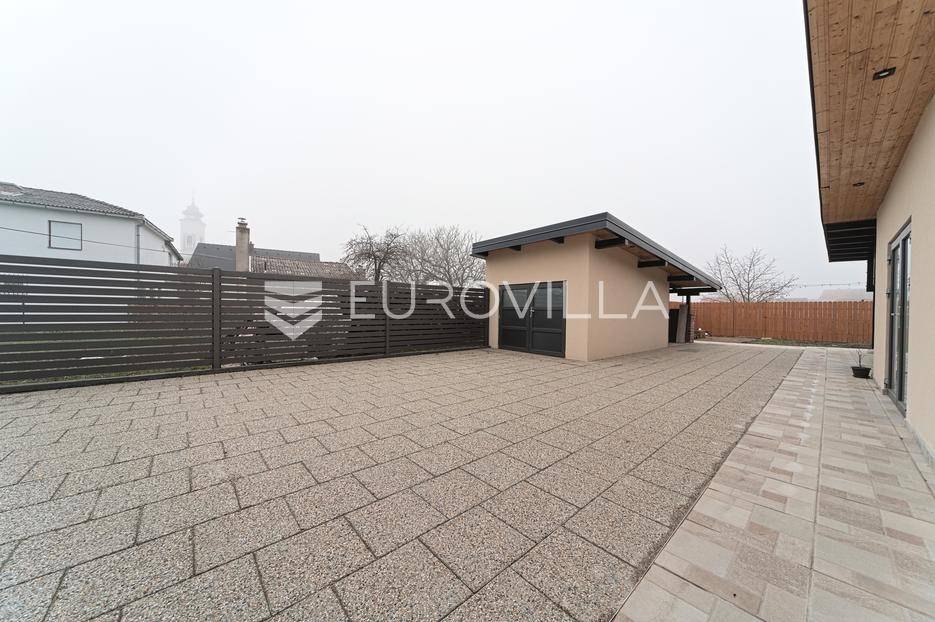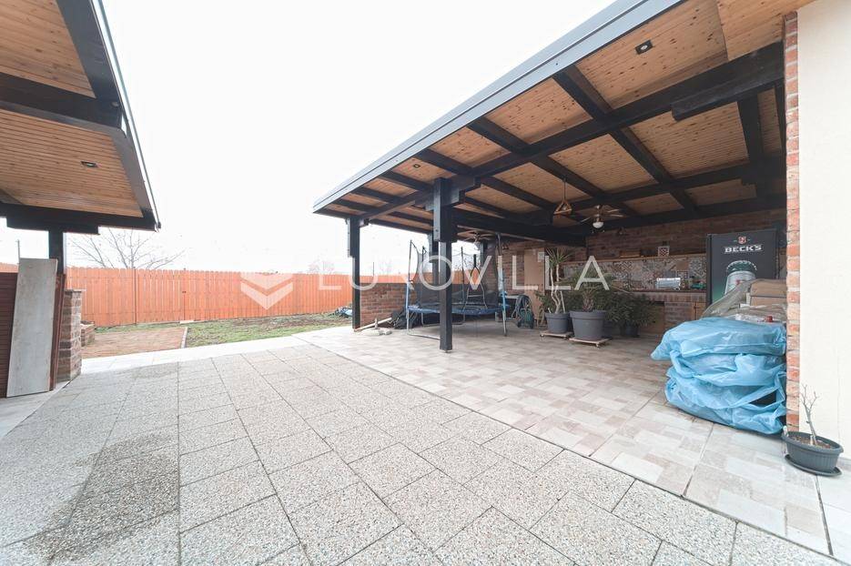 Bilje, Osijek, prodaje se moderna kuća u centru Bilja s pomoćnim prostorijama, idealna za obitelj ili turistički smještaj.Glavna kuća površine 141 m2 nudi tri spavaće sobe, prostranu kuhinju s otokom i blagovaonicom povezanu s dnevnim boravkom, gostinjski manji WC i veće kupatilo. Nekretnina je adaptirana 2024. godine, grijanje je riješeno klima uređajima i norveškim radijatorima, a na krovu su solarni paneli snage 10 kW. Stolarija je PVC, antracit izvana i bijela iznutra, gradnja je kvalitetna - 50 cm puna cigla s 15 cm izolacije, a kuća ostaje djelomično namještena. U podrumu se nalazi prostorija od 25 m2. Pomoćne prostorije ukupne površine oko 50 m2 predviđene su za wellness zonu, ali se lako mogu prenamijeniti u stan ili turistički smještaj, s dvije odvojene sobe i dva WC-a (muški i ženski). Dvorište je opremljeno vanjskom kuhinjom, terasom, zidanim roštiljem, ložištem i pripremom za vanjski tuš. Iza dvorišta nalazi se oranica površine 900 m2, a ukupna površina čestice iznosi 1.486 m2, što pruža dodatni prostor za vrt, voćnjak ili proširenje turističkog i privatnog dijela nekretnine. Ispred kuće nalazi se javni parking, dok je u dvorištu garaža za jedan automobil.Lokacija u centru Bilja omogućava jednostavan pristup svim potrebnim sadržajima - trgovinama, školama, vrtićima i javnom prijevozu, a blizina turističkih atrakcija čini ovu nekretninu idealnom i za turistički najam. Zbog funkcionalnosti, dodatnih prostorija i velike čestice, kuća je pogodna za proširenje, najam, turizam ili komercijalnu prenamjenu.Na raspolaganju smo za sva dodatna pitanja i dogovor oko razgledavanja nekretnine.