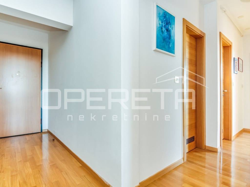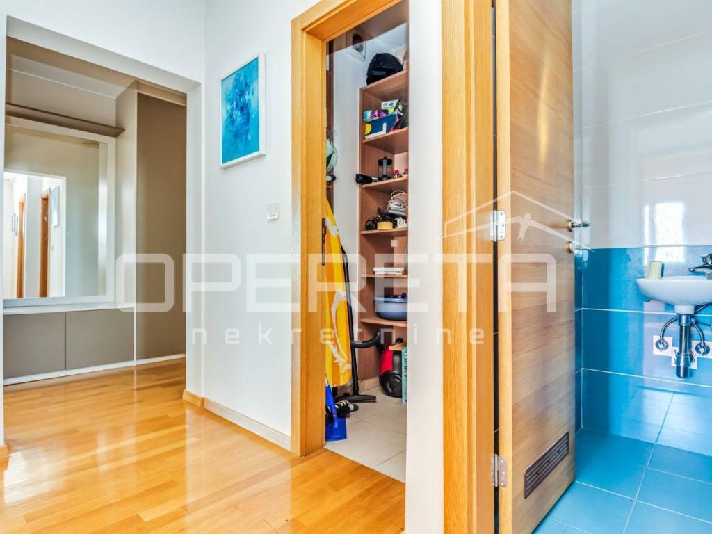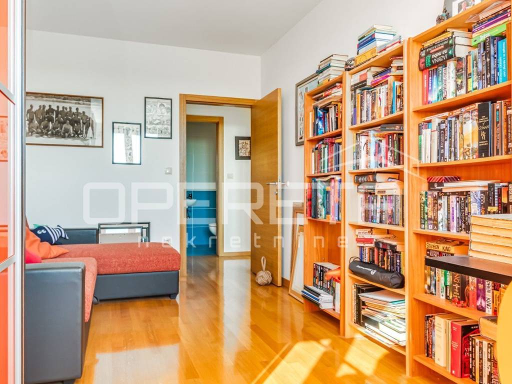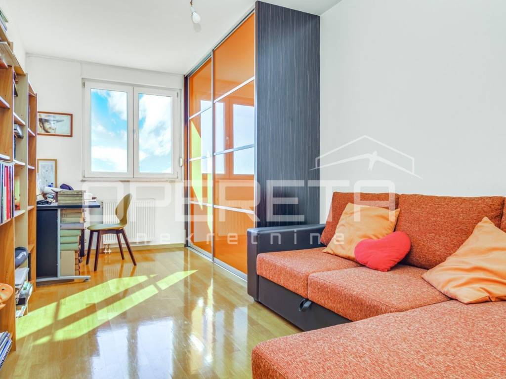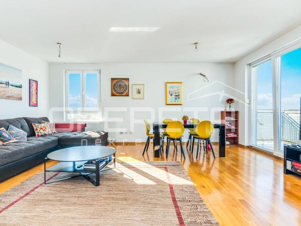 PRODAJA STANA, KNEŽIJA, Horvaćanska, 92,06 m2, prostran i svijetao trosoban stan smješten na sedmom, ujedno i zadnjem katu zgrade iz 2007. godine. Nalazi se na odličnoj poziciji u zgradi te ima prekrasan, otvoren pogled i tijekom cijeloga je dana ispunjen prirodnim svjetlom. Sastoji od prostranog ulaznog hodnika s ugradbenim ormarom, ostave, kupaonice s WC-om koja ima vlastiti prozor, dodatno zasebnog WC-a, dvije komforne spavaće sobe te velikog open space dnevnog boravka s blagovaonicom i kuhinjom te izlazom na loggiu. Trenutno stan funkcionira kao trosoban, no u originalnom projektu bio je zamišljen kao četverosoban, pa se vrlo jednostavnom intervencijom može vratiti u prvobitnu varijantu prema potrebama budućeg vlasnika. Zgrada je uredna, mirna, posložena i dobro održavana, a stan je odmah useljiv. Zbog svoje kvadrature, rasporeda, orijentacije i same mikrolokacije - stan je idealan i po mjeri jedne obitelji. Preporuka agencije!