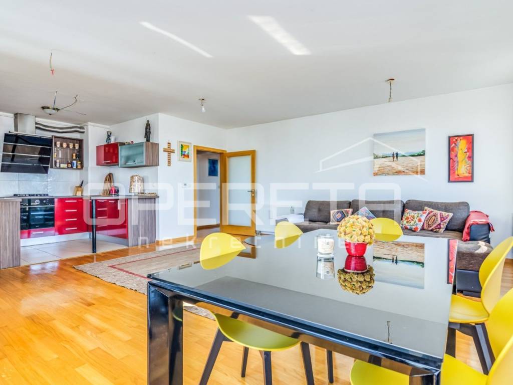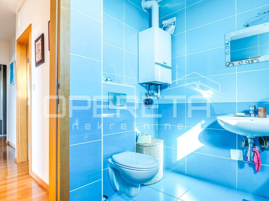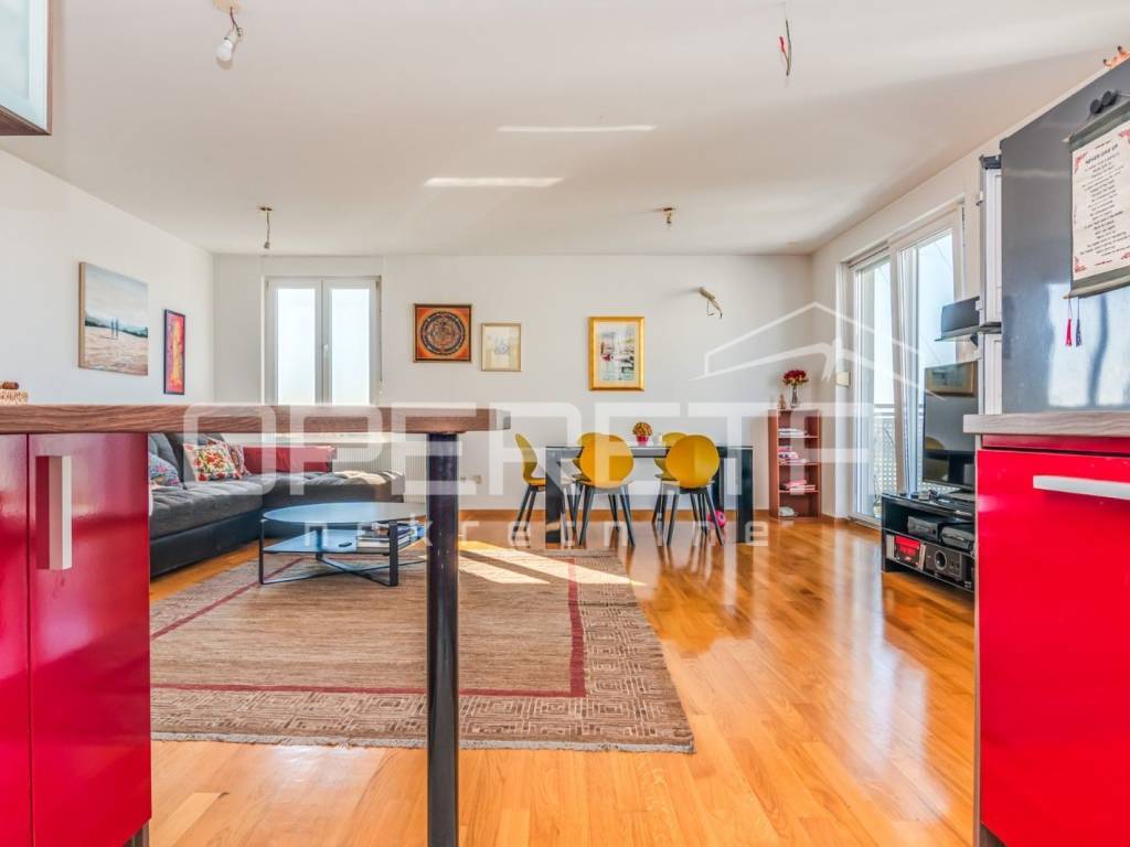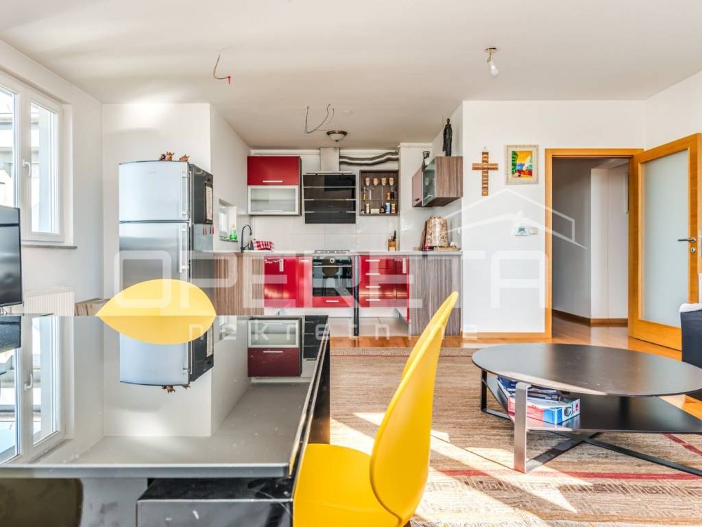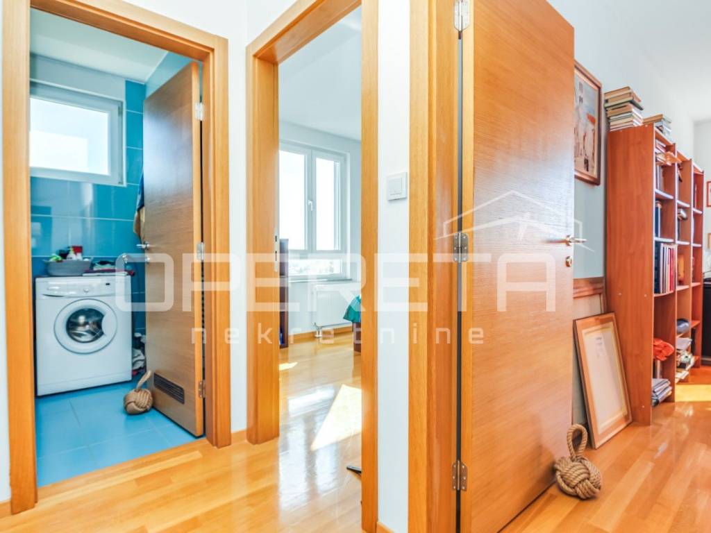 PRODAJA STANA, KNEŽIJA, Horvaćanska, 92,06 m2, prostran i svijetao trosoban stan smješten na sedmom, ujedno i zadnjem katu zgrade iz 2007. godine. Nalazi se na odličnoj poziciji u zgradi te ima prekrasan, otvoren pogled i tijekom cijeloga je dana ispunjen prirodnim svjetlom. Sastoji od prostranog ulaznog hodnika s ugradbenim ormarom, ostave, kupaonice s WC-om koja ima vlastiti prozor, dodatno zasebnog WC-a, dvije komforne spavaće sobe te velikog open space dnevnog boravka s blagovaonicom i kuhinjom te izlazom na loggiu. Trenutno stan funkcionira kao trosoban, no u originalnom projektu bio je zamišljen kao četverosoban, pa se vrlo jednostavnom intervencijom može vratiti u prvobitnu varijantu prema potrebama budućeg vlasnika. Zgrada je uredna, mirna, posložena i dobro održavana, a stan je odmah useljiv. Zbog svoje kvadrature, rasporeda, orijentacije i same mikrolokacije - stan je idealan i po mjeri jedne obitelji. Preporuka agencije!