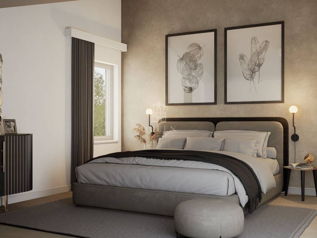 Master spavaća soba na prvom katu ima izlaz na terasu od cca 20 m2.