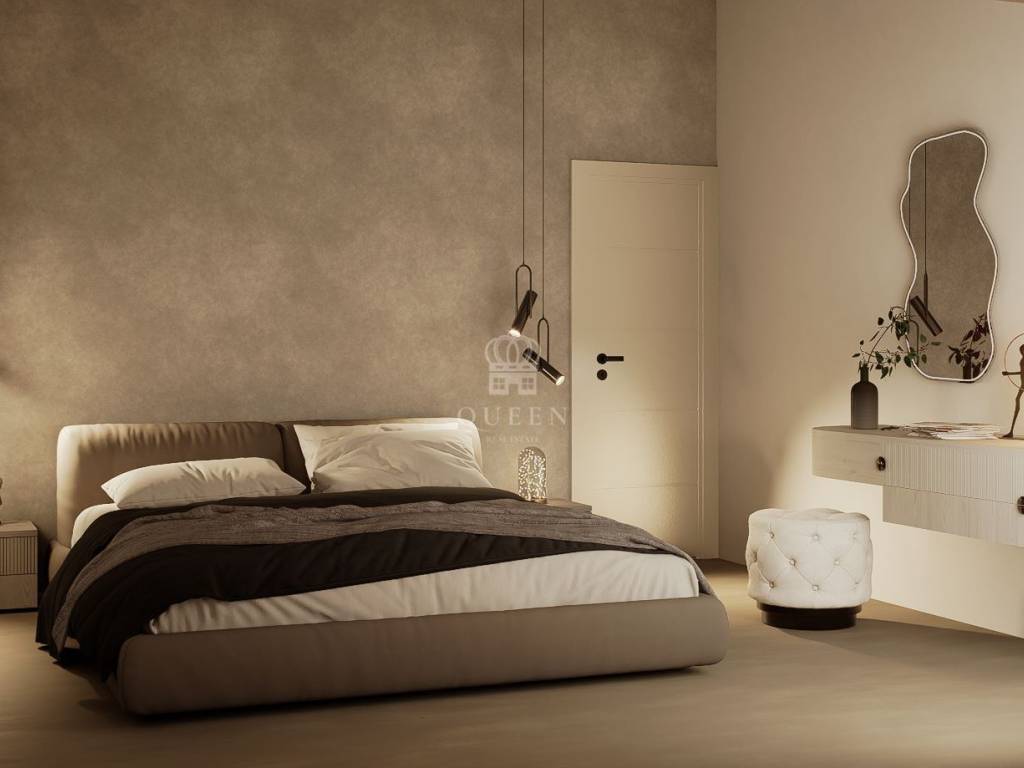 Svi podovi interijera se rade od microcementa u mat verziji kao i pojedini zidovi soba, boravka te kupaonice.