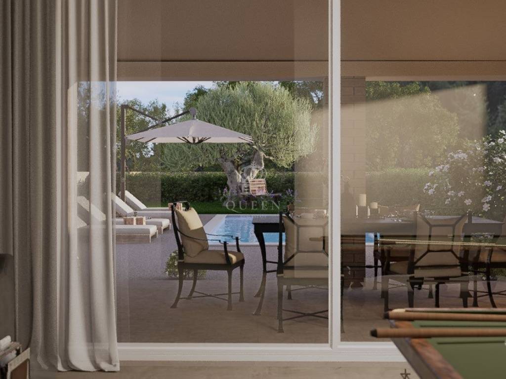Vanjski bazen površine cca 30 m2 bit će bijele/krem boje, te će biti grijan.