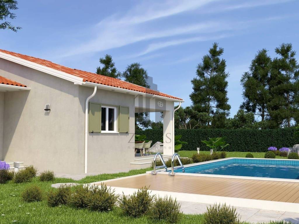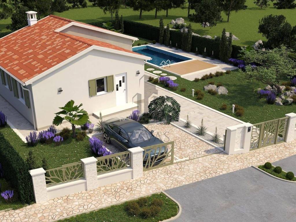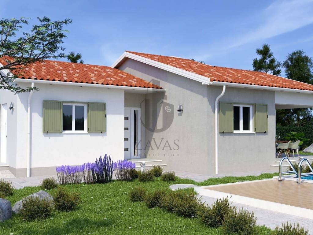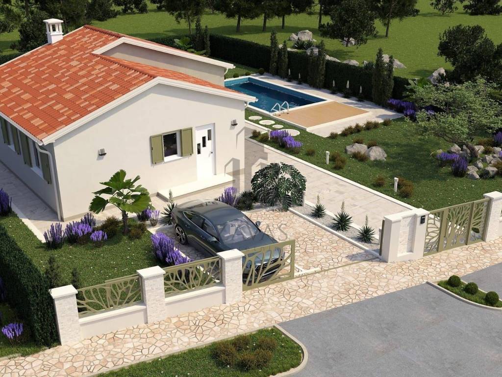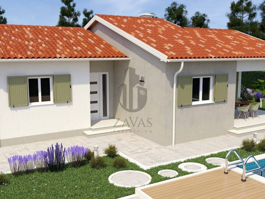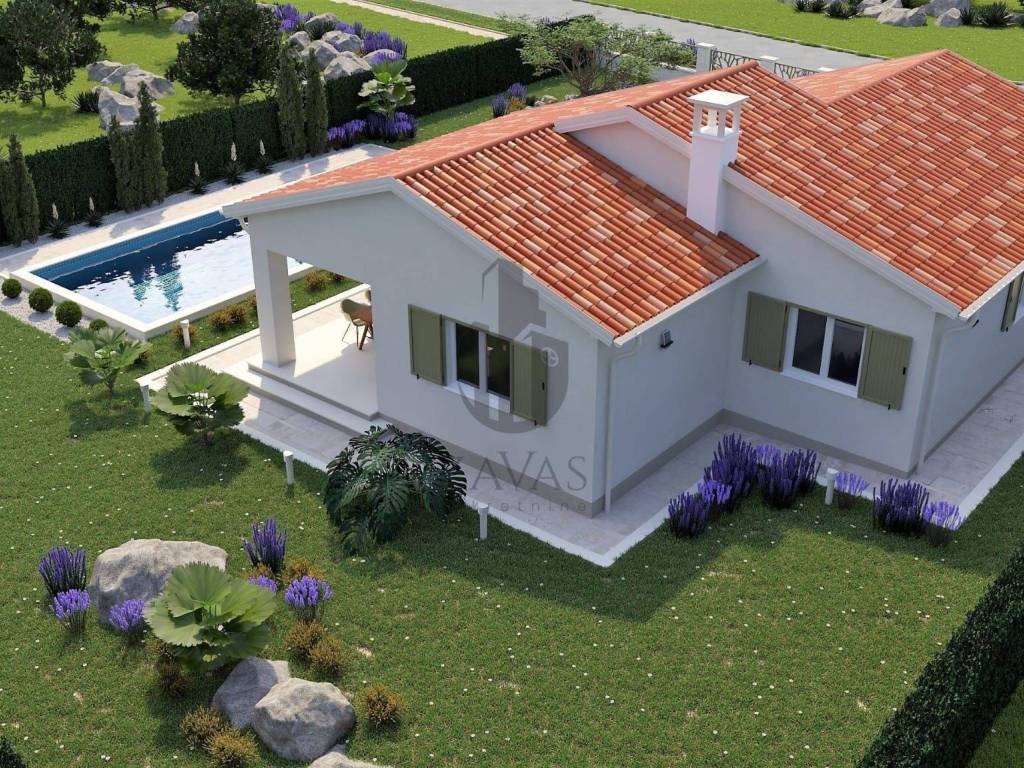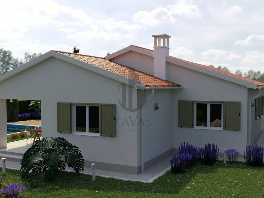 Prodajemo novu kuću za odmor sa bazenom. Kuća se nalazi na Istočnoj obali Istre, svega 3.5 kilometara udaljena od grada Labina. Kuća je okružena prirodom a susjedne kuće su također kuće za odmor. Naselje je prekrasno uređeno a sadržaji poput trgovine, ljekarne, i svih ostali sadržaja porebnih za svakodnevni život kao i restorani i kafići nalaze se na samo nekoliko minuta vožnje. Kuća je trenutno u fazi izgradnje, prodaje se potpuno dovršena sa uređenom okućnicom. Ukupna površina kuće iznosi 107.75 četvornih metara uz bazen od 32 četvorna metra. Kuća se gradi u tradicionalnom stilu kao prizemnica sa dvije spavaće sobe i dvije kupaone. Dnevni prostor objedinjuje kuhinju, blagovaonu i dnevni boravak u jedan veliki prostor sa funkcionalnim rasporedom i puno dnevnog svjetla. U kuću će biti ugrađeno grijanje i hlađenje pomoću toplinske pumpe, u kupaonama podno grijanje a za potpuni ugođaj u dnevnom porstoru je predviđen kamin na drva. Kuća će biti energetski neovisna sa solarnim panelima za proizvodnju električne energije. Velika okućnica će biti ograđena i uređena u tradicionalnom mediteranskom stilu, u središnjem djelu je predviđen veliki bazen sa uređenim sunčalištem.