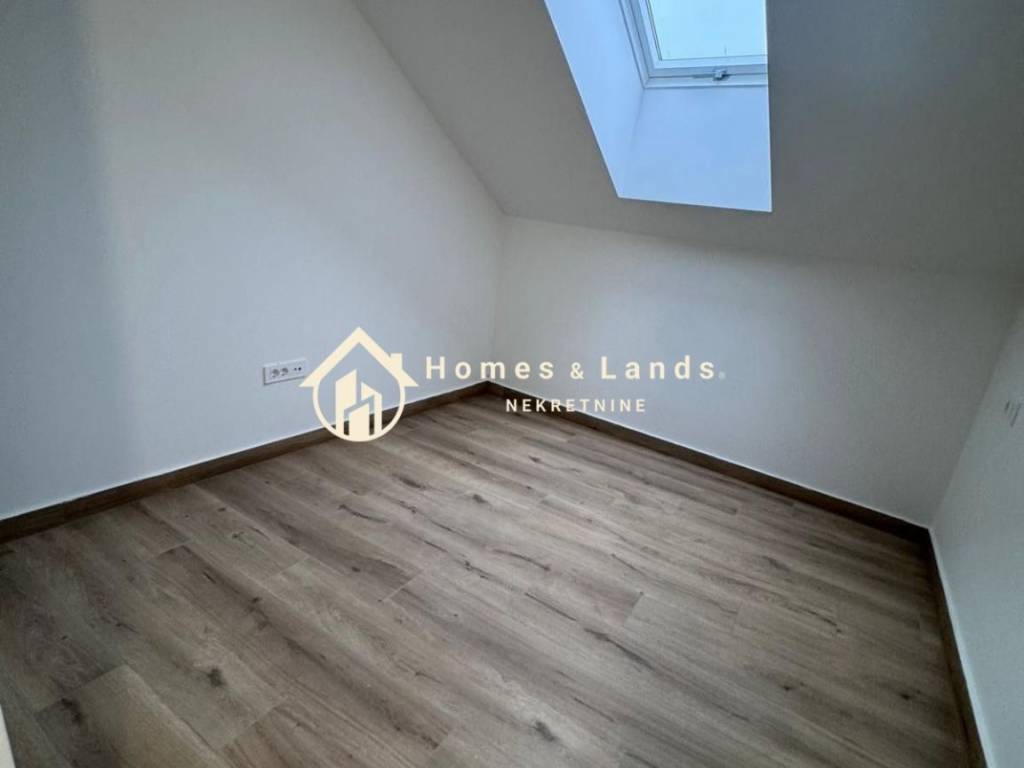 Četverosoban stan u potkrovlju ukupne površine 80,72m2(obračunski 71,34m2, oznake S3Z4) sastoji se od ulaznog hodnika,kuhinje s blagovaonicom i dnevnog boravka,spremišta u podumu,kupaonice,loggie,tri spavaće sobe,hodnika i kupaonice i vanjskog parkinga.