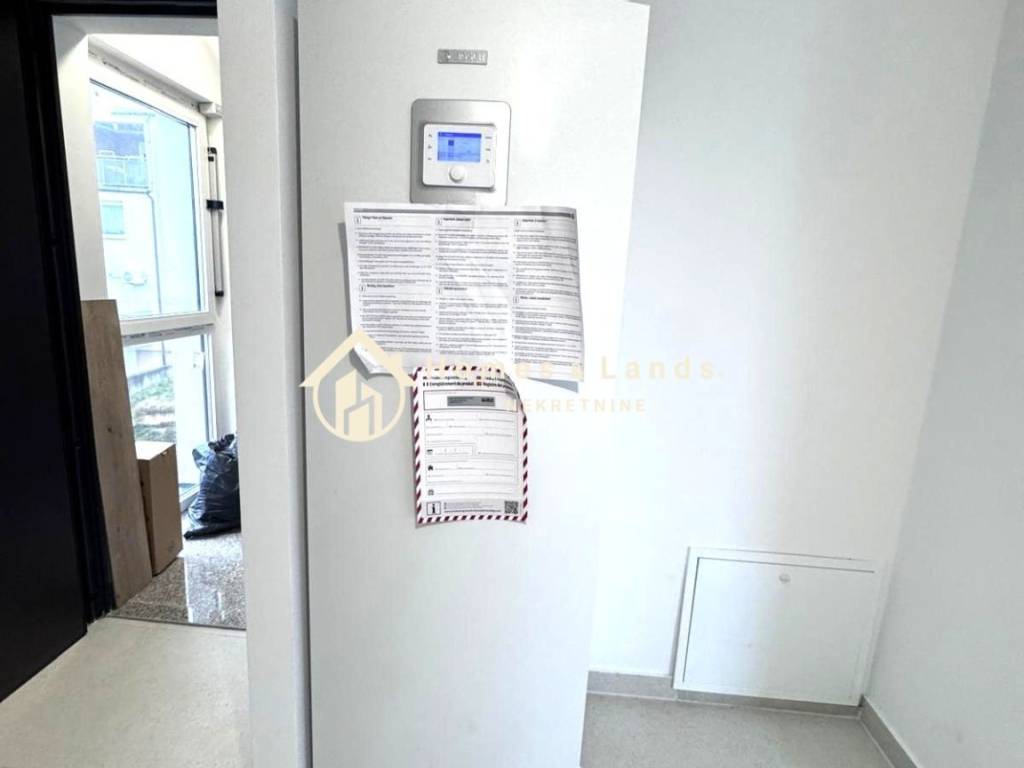 Podno grijanje s dizalicom topline (termostat u svakoj prostoriji) Klima uređaj PVC stolarija s troslojnim IZO staklom i elektro aluminijskim roletama Keramičke pločice 1. klase i parket prilagođen podnom grijanju Kupaonice potpuno opremljene sanitarnim uređajima Fasada 15 cm (stiropor + kamena vuna) izvrsna toplinska i zvučna izolacija Energetski razred A+
