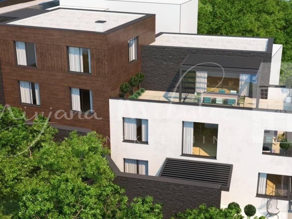 Stan ima 121 m2 te 94,10 m2 zatvorenog stambenog dijela koje čini: ulazni dio, kupaonica, gostinjski wc, 3 prostrane spavaće sobe, te odvojeni dnevni dio otvorenog koncepta ( open space) kojeg čine dnevni boravak, blagovaona i kuhinja ( 34,6 m2). Iz dnevnog dijela se izlazi na prostranu terasu od 56,7 m2 ( koef.: 14,17m2).