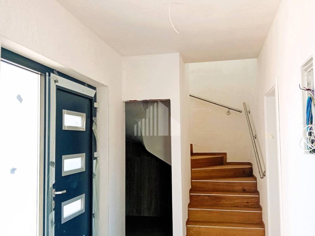 The house was built on the border on a plot with a total area of 611.00 m2. It consists of a covered entrance, entrance area, storage room, bathroom, spacious living room with kitchen and dining room, bedroom, engine room, all located on the ground floor, while the staircase leads to the 1st floor, where there is a lighted corridor from which there is access to an uncovered terrace and two bedrooms with private bathrooms (one bedroom also has access to an uncovered terrace). The total net area of the house is 160.70 m2. The house is sold with a garden, an outdoor swimming pool of 40.1 m2 and two parking spaces.