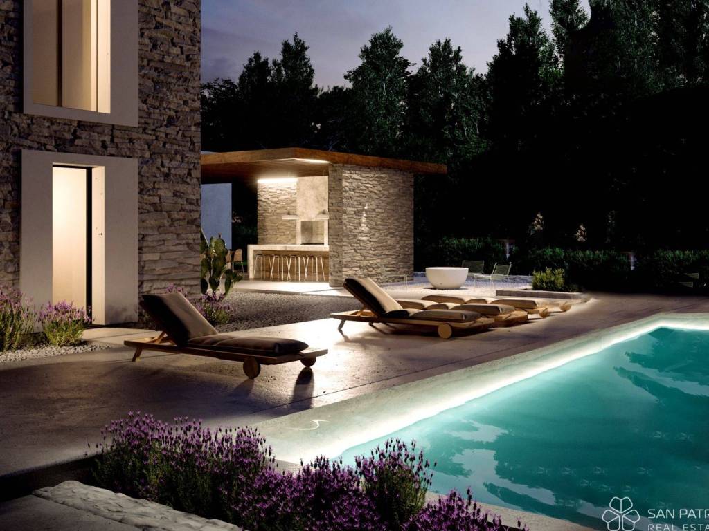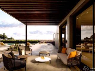Luxuriöse Ausstattung: Jede Villa bietet 400 Quadratmeter luxuriösen Wohnraum, der sich auf 100 Quadratmeter überdachten Außenbereich öffnet, ergänzt durch geräumige Terrassen, große Pools und gepflegte Gärten mit Lavendel, Oliven und duftenden Sträuchern, die einen sinnlichen Friedens- und Luxusraum schaffen.