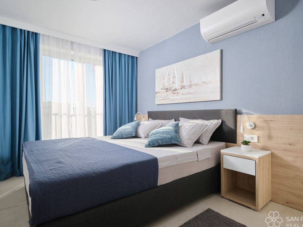 The building, which holds an A energy certificate, was built in 2017 and is located at the entrance of the settlement. The apartment is currently in the daily rental system, receiving top guest ratings, and brings the owner an annual net profit of 20,000 EUR.