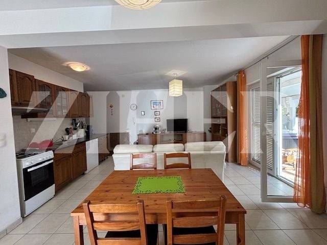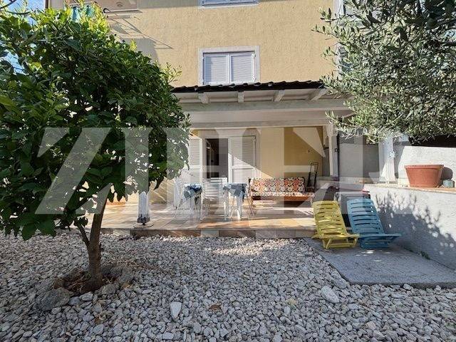 Odlična lokacija, 500 m od centra Grada Krka i mora, djelomičan pogled na more iz vrta stana.