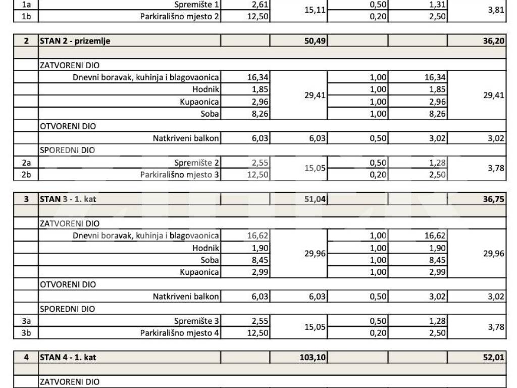 S4 - Dnevni boravak, kuhinja, kupaonica, dvije spavaće sobe, ukupne površine 37 m2 + natkriveni balkon 6 m2 + 2 parkirna mjesta + spremište 2 m2 + spremište 21 m2 = 200.000 eura