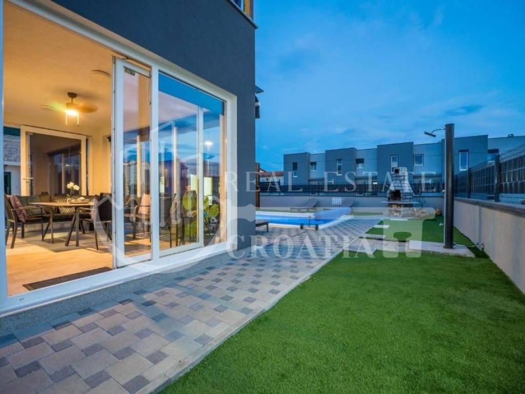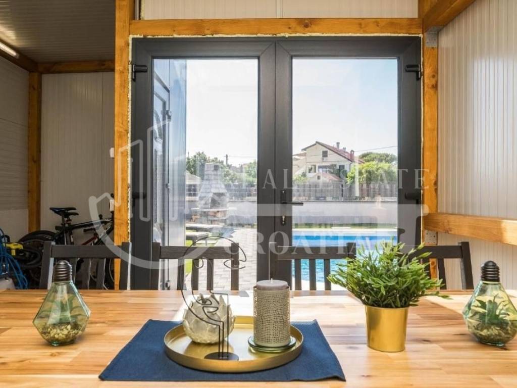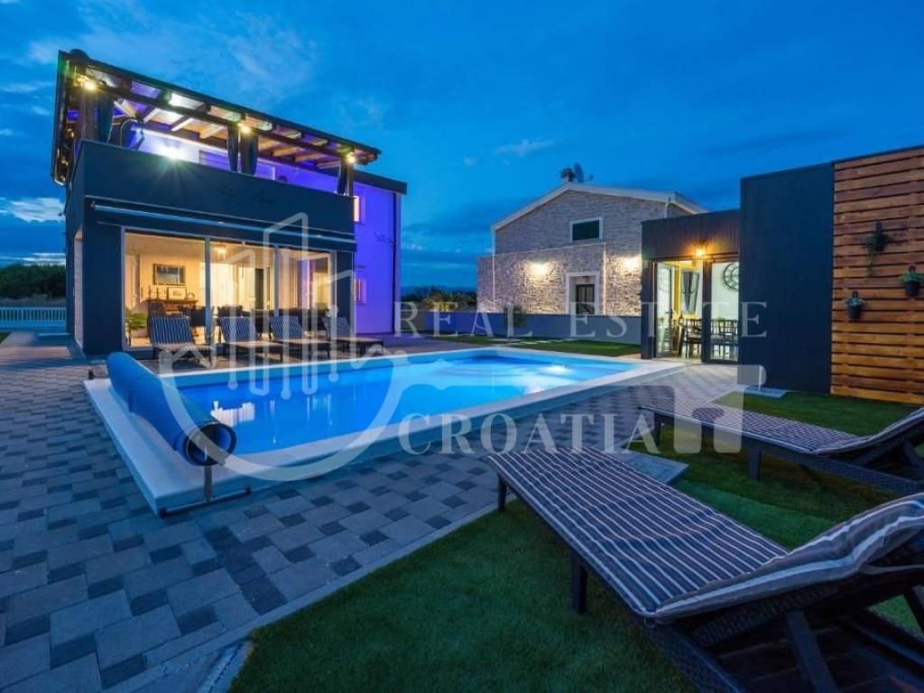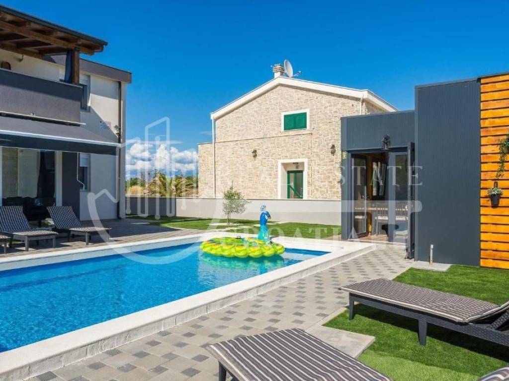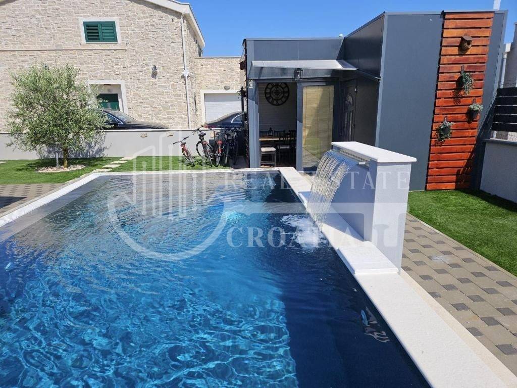 NA PRODAJU Luksuzna vila s bazenom, 80m od plaže Privlaka, DalmacijaProdaje se ekskluzivna Villa smještena u mirnom dijelu Privlake, svega nekoliko minuta hoda od pješčane plaže Mostina. Ova moderno uređena nekretnina pruža savršenu kombinaciju udobnosti, privatnosti i mediteranskog šarma, idealna za obiteljski odmor ili turistički najam.Osnovne značajke: Broj spavaćih soba: 3 Broj kupaonica: 2 Potpuno opremljena kuhinja s blagovaonicom Prostrani dnevni boravak s izlazom na terasu Velika terasa s pogledom na more i planine Klimatizacija u svim prostorijama Privatno parkiralište
