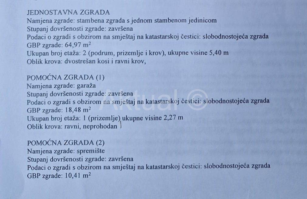 Kuća posjeduje sve priključke osim plina koji se nalazi ispred parcele.