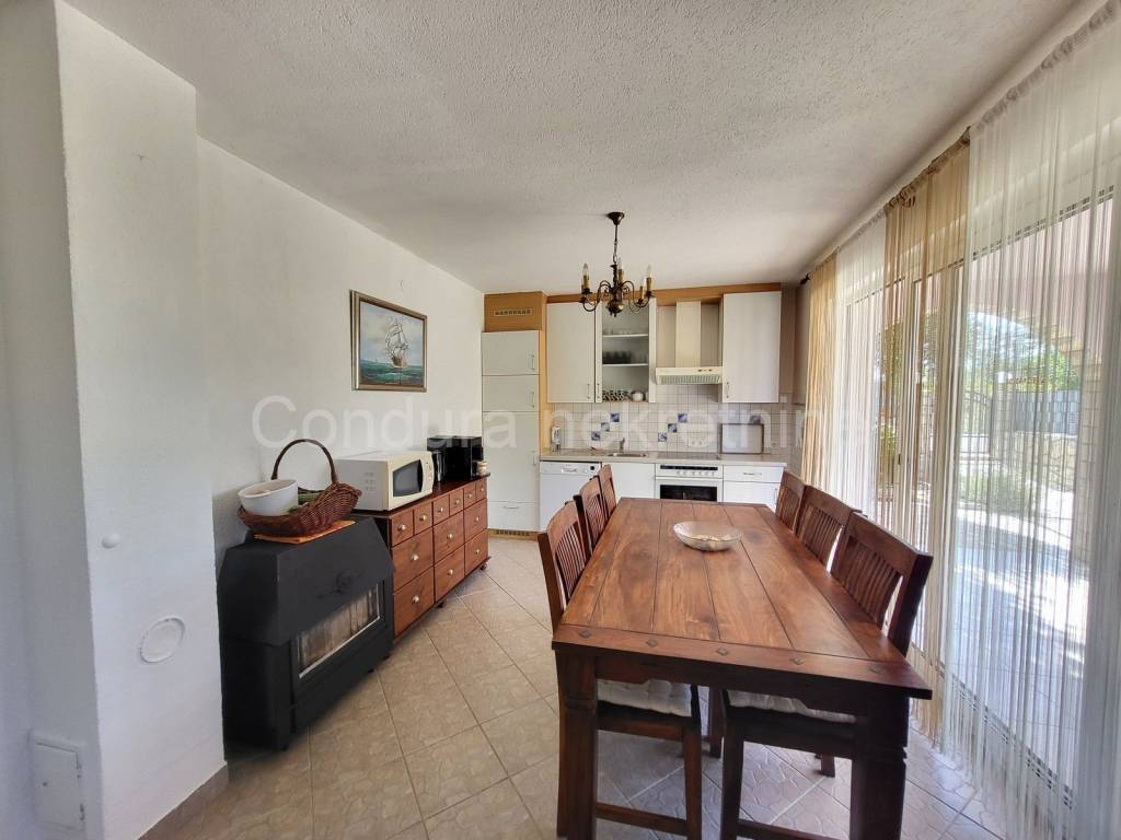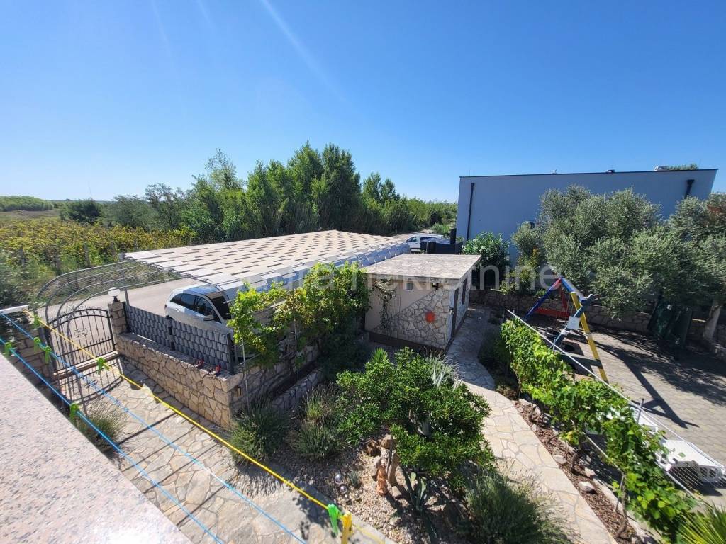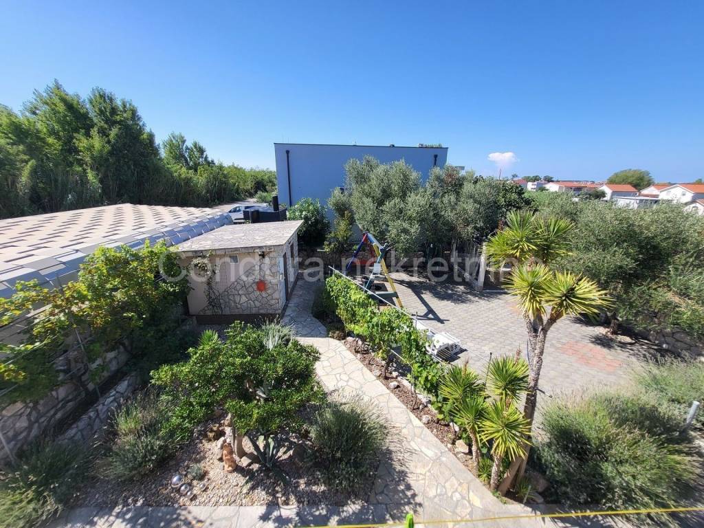 Der Garten ist wunderschön mit einheimischen Pflanzen und Vegetation gestaltet, spendet natürlichen Schatten und wird sorgfältig gepflegt. Er bietet Bereiche zum geselligen Beisammensein, Entspannen und Spielen für Kinder. Er ist mit Benkovac-Stein gepflastert und von einer Steinmauer umgeben. Der Garten verfügt über einen größeren und einen kleineren Abstellraum, eine Außendusche und einen in Betrieb befindlichen Brunnen. Direkter Zugang von der öffentlichen Straße zum eingezäunten und überdachten Parkplatz.