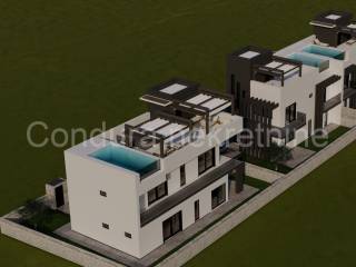 Jede Villa verfügt über einen eigenen Eingang, einen angelegten Garten, zwei Parkplätze sowie eine Dachterrasse mit Pool und bietet einen atemberaubenden Panoramablick auf das Meer und das Velebit-Gebirge.